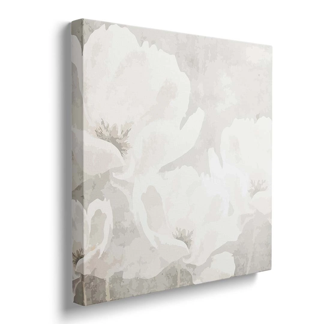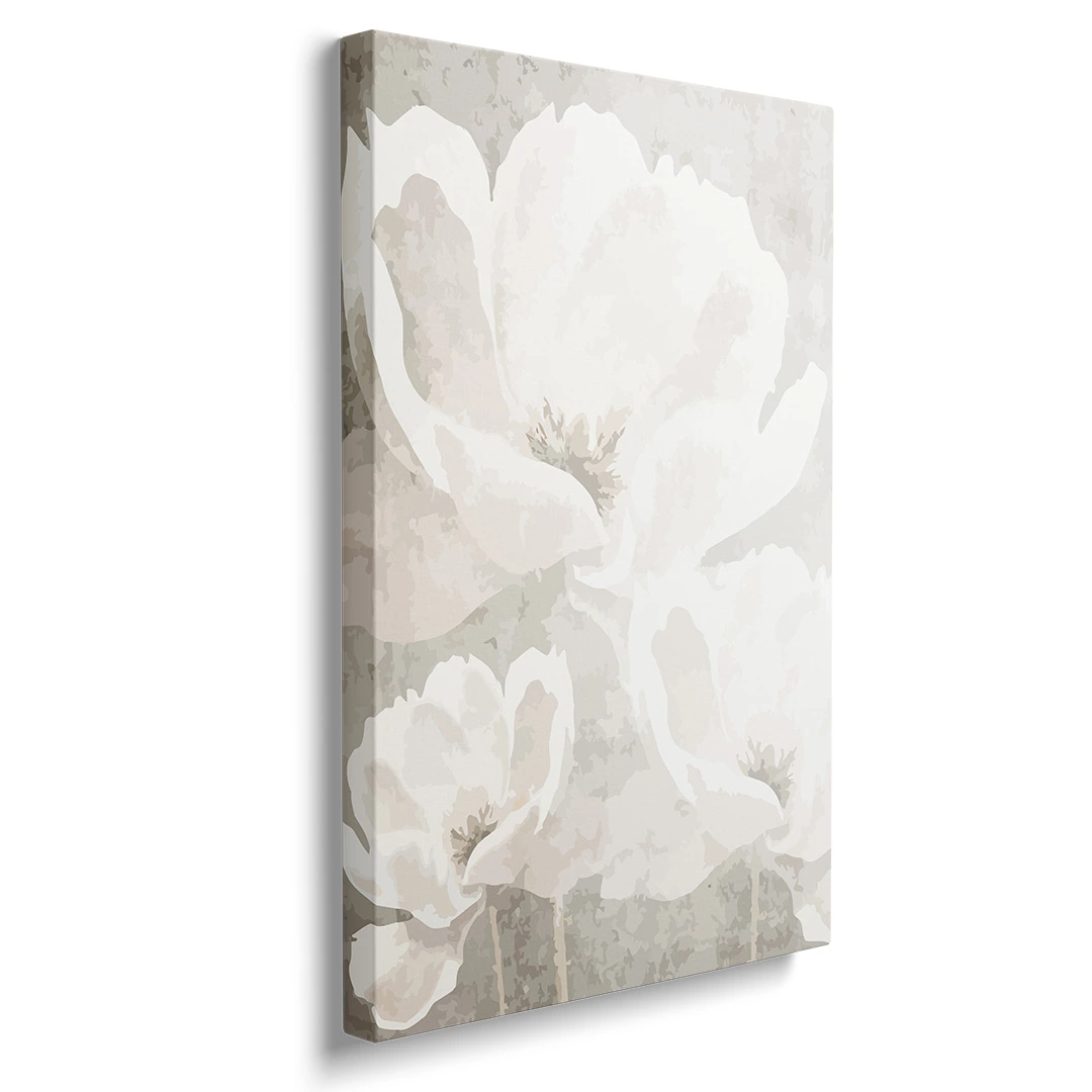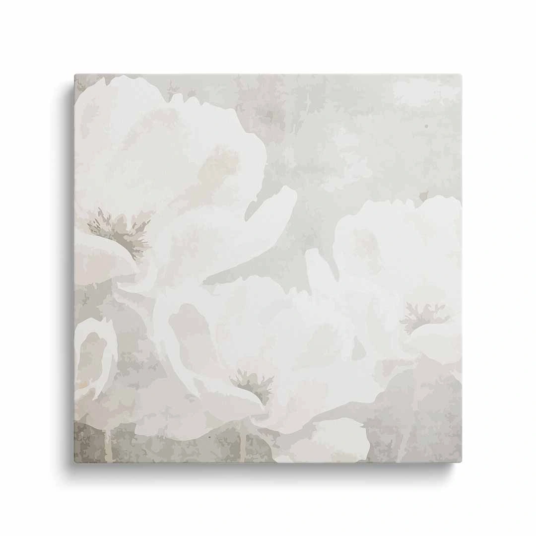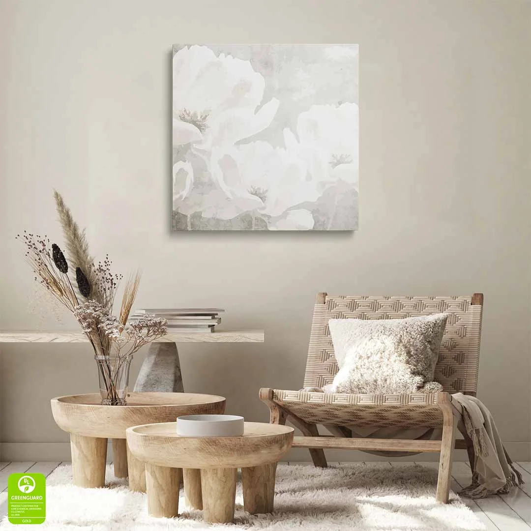 Obraz na płótnie - Z białymi kwiatami na teksturowym, szarobeżowym tle