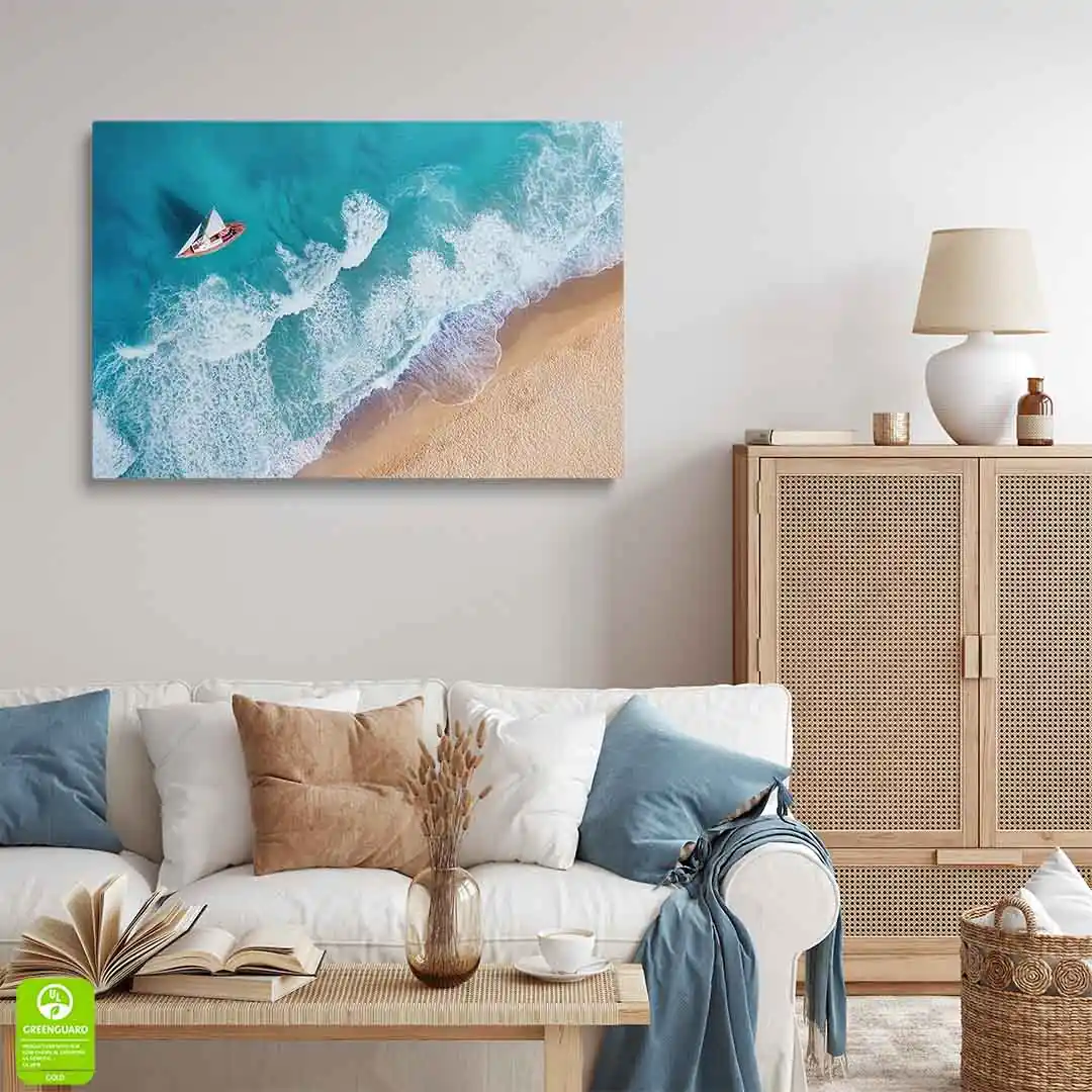 Obraz drukowany jest przy wykorzystaniu nowoczesnej technologii druku Canon UVgel. Uzyskany jest efekt widocznego prawdziwego płótna malarskiego. Użyte tusze są ekologiczne, bezwonne oraz trwałe - odporne na blaknięcie oraz działanie promieni słonecznych UV. Certyfikowane atramenty spełniają najsurowsze światowe normy dotyczące niskiej emisji lotnych związków organicznych (VOC), co sprawia że nasze obrazy są całkowicie bezpieczne i mogą być z powodzeniem wykorzystywane jako elementy dekoracji wnętrz w domach i pomieszczeniach, gdzie ludzie a zwłaszcza dzieci i osoby narażone na szkodliwe związki, spędzają dłuższy czas. Odwzorowana jest fotograficzna jakość wydruku, a kolory są żywe i głęboko nasycone.