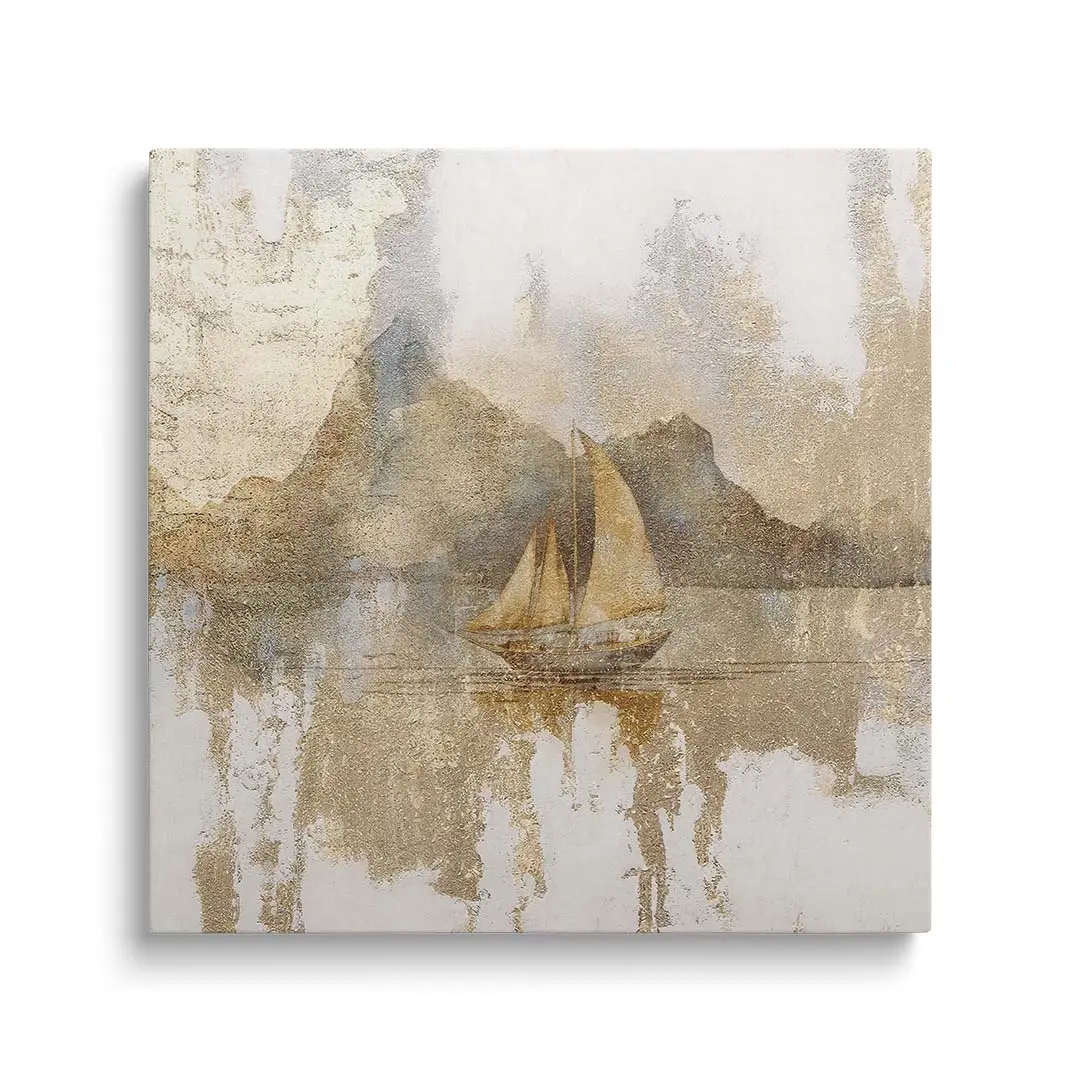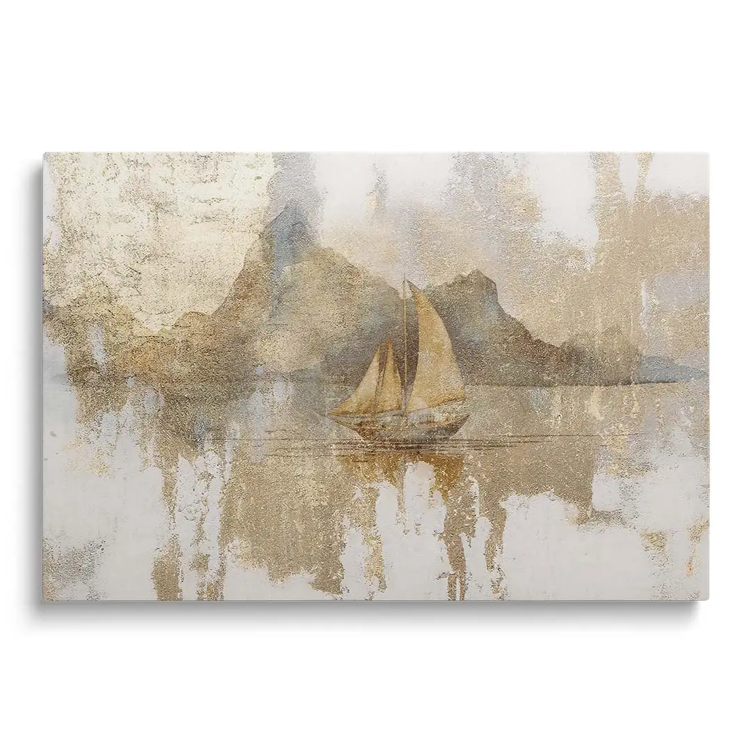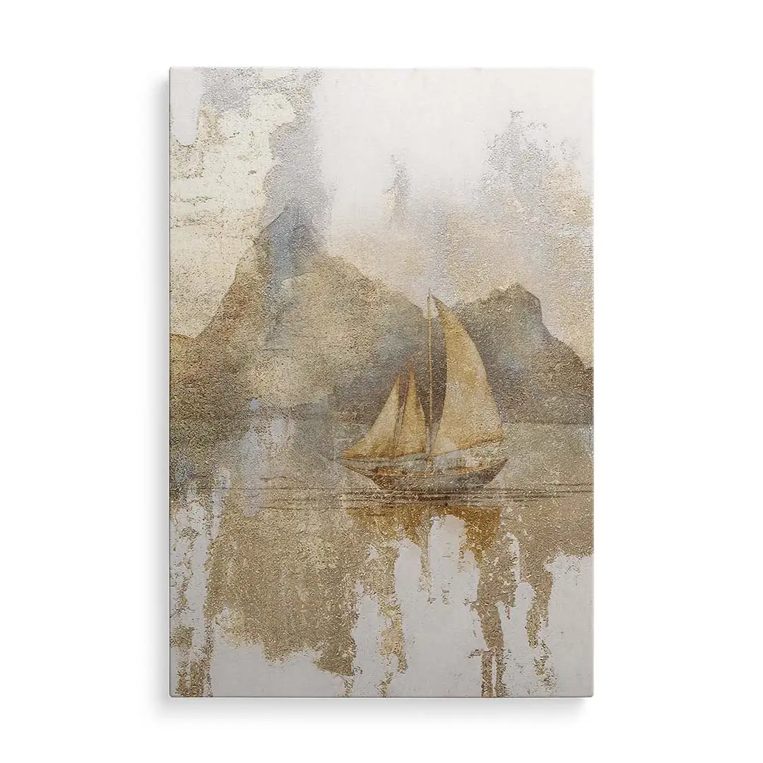 Obraz na płótnie - Złota Żaglówka – Artystyczna dekoracja do salonu i sypialni