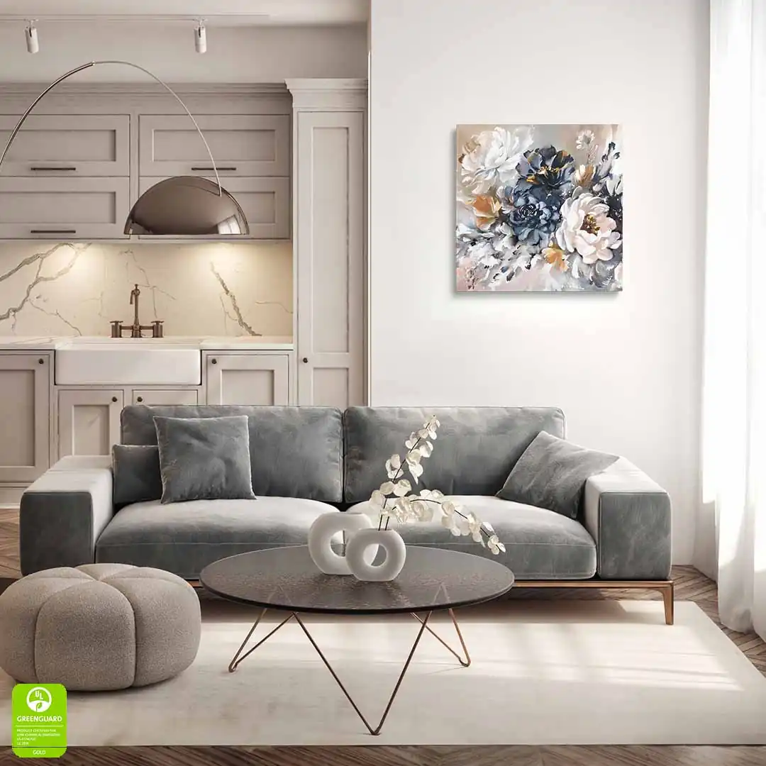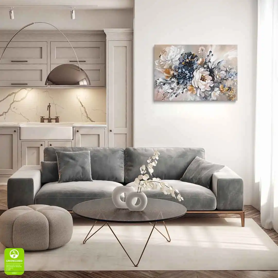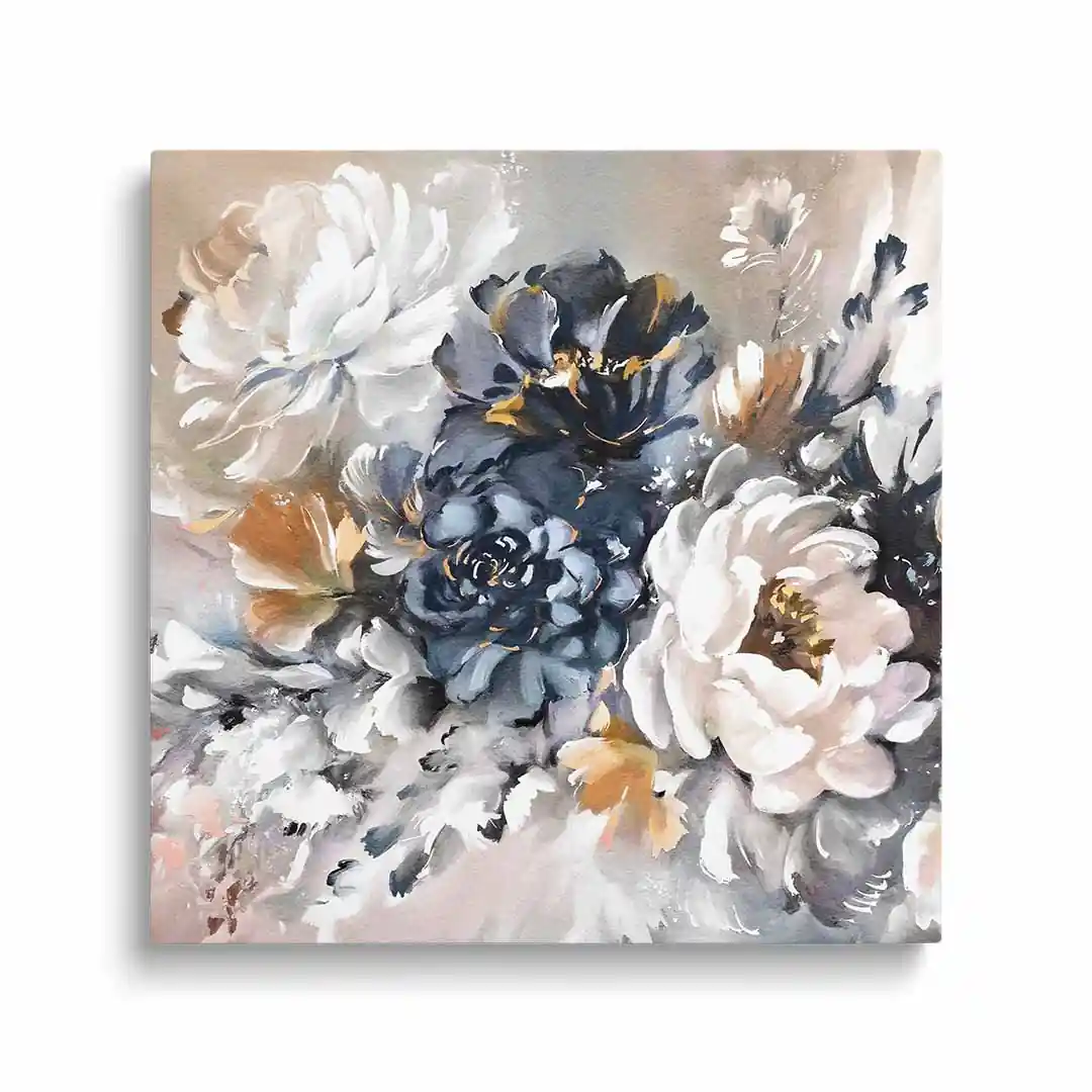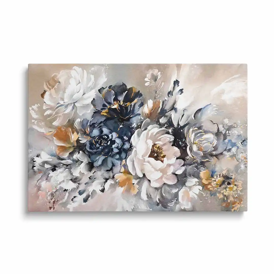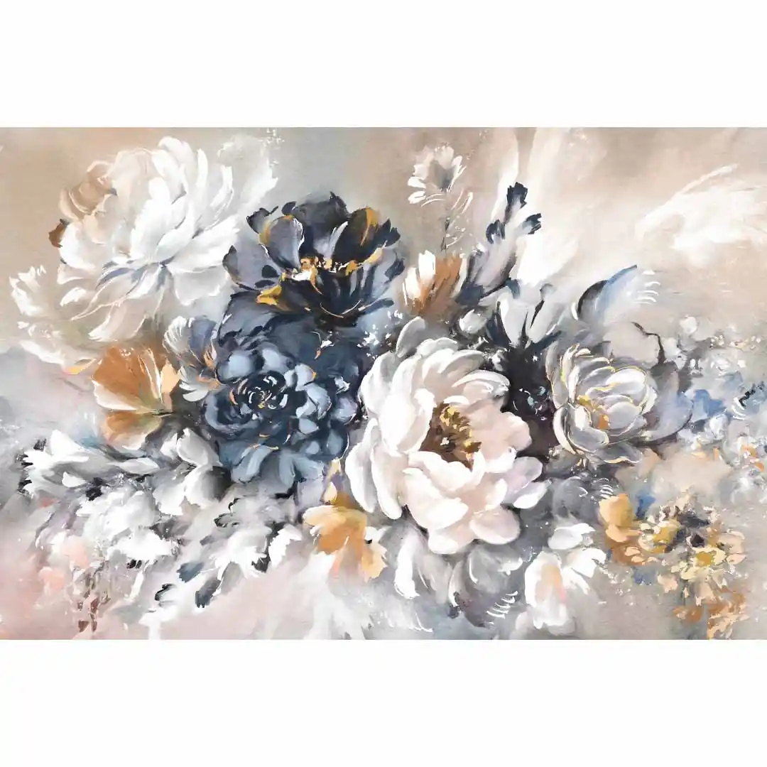 - techniką druku - proces drukowania wykorzystuje inne metody tworzenia kolorów (tzw. "przestrzeń barw") niż te, które stosowane są na ekranach komputera; kolory drukowane mogą wyglądać również nieco inaczej na różnych materiałach (np. canvasie, flizelinie, papierze czy szkle itp.) i przy użyciu różnych tuszy, w naszym przypadku tuszy do druku UV; złote elementy nie są wybiórczo metalizowane - efekt uzyskany jest poprzez wydruk tekstury w kolorze złota;