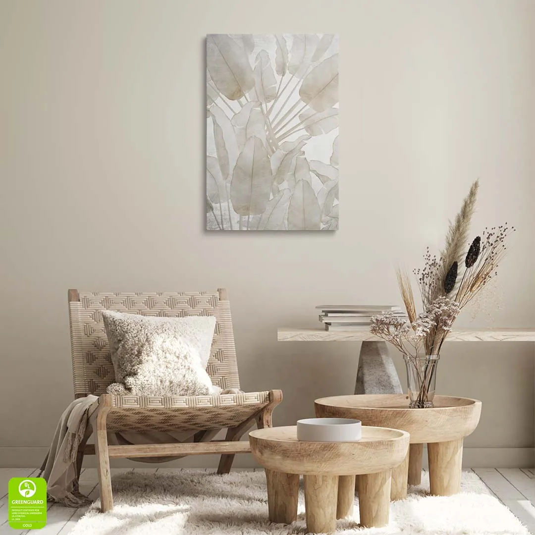 Obraz na szkle - Beżowe Liście Bananowca, nowoczesna botaniczna dekoracja