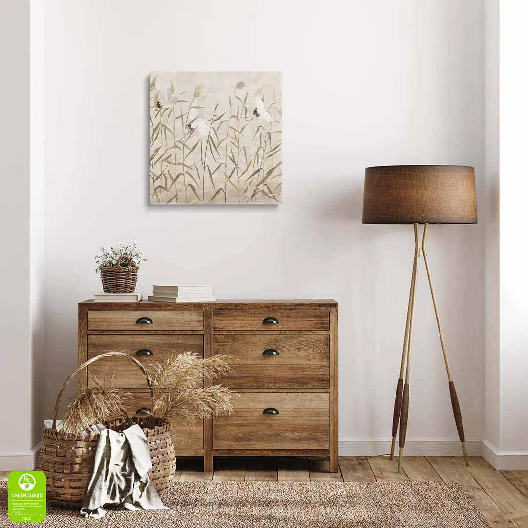 - techniką druku - proces drukowania wykorzystuje inne metody tworzenia kolorów (tzw. "przestrzeń barw") niż te, które stosowane są na ekranach komputera; kolory drukowane mogą wyglądać również nieco inaczej na różnych materiałach (np. canvasie, flizelinie, papierze czy szkle itp.) i przy użyciu różnych tuszy, w naszym przypadku tuszy do druku UV; złote elementy nie są wybiórczo metalizowane - efekt uzyskany jest poprzez wydruk tekstury w kolorze złota;