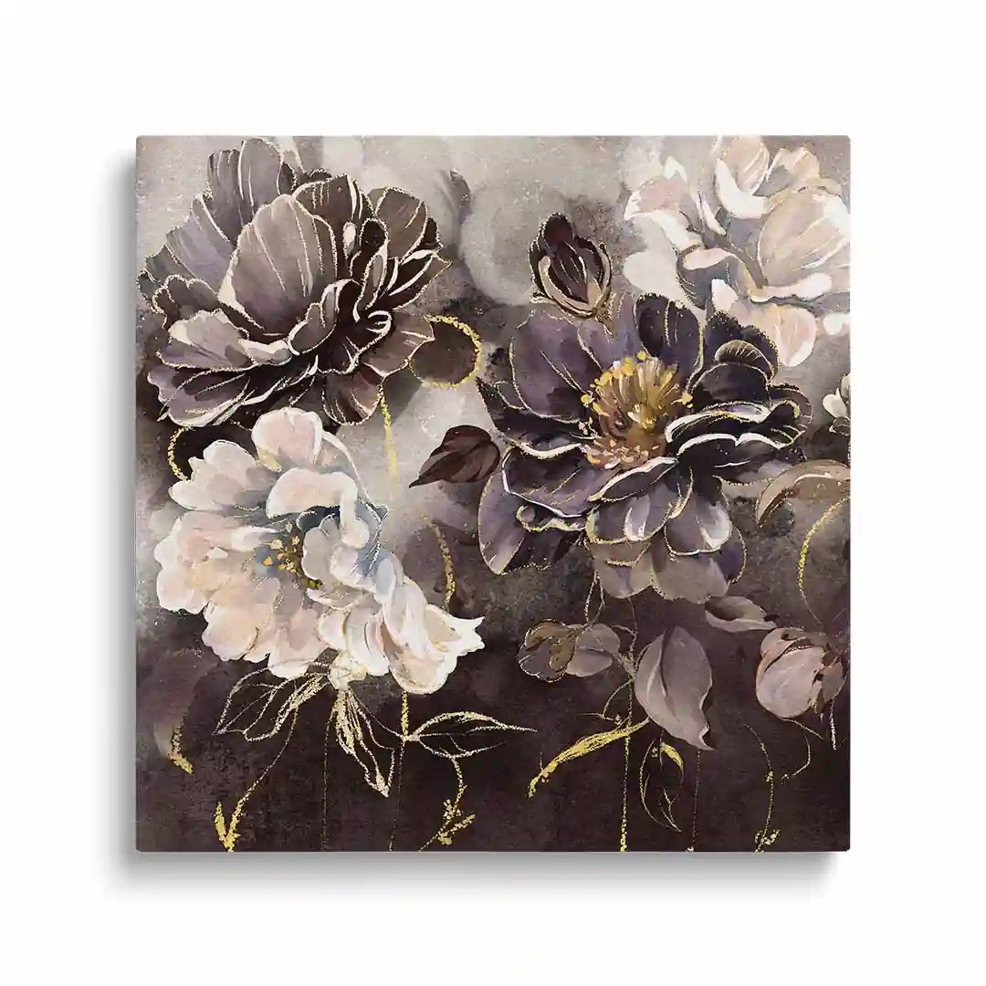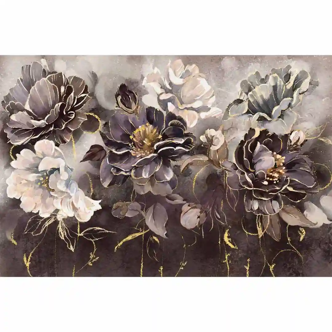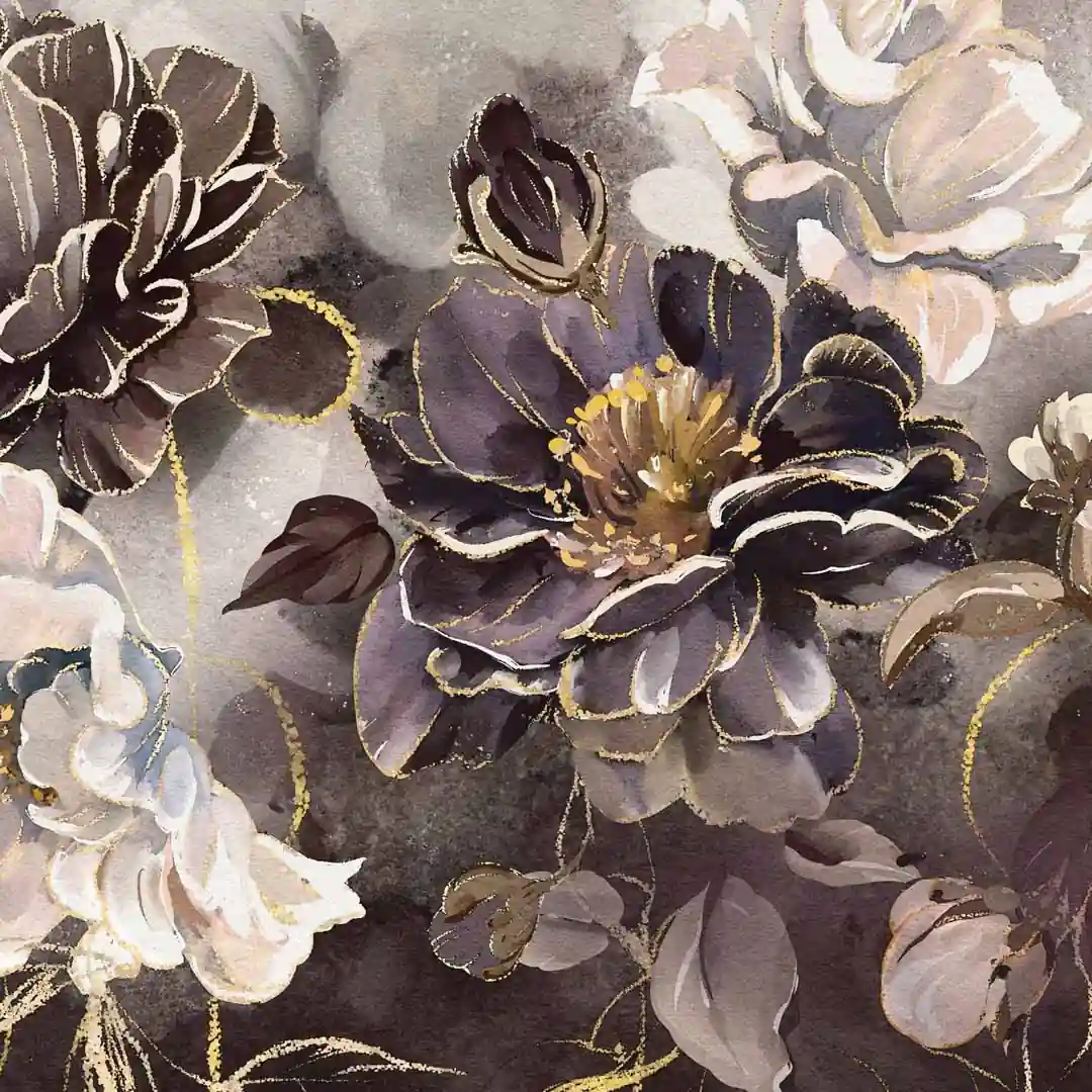 - techniką druku - proces drukowania wykorzystuje inne metody tworzenia kolorów (tzw. "przestrzeń barw") niż te, które stosowane są na ekranach komputera; kolory drukowane mogą wyglądać również nieco inaczej na różnych materiałach (np. canvasie, flizelinie, papierze czy szkle itp.) i przy użyciu różnych tuszy, w naszym przypadku tuszy do druku UV; złote elementy nie są wybiórczo metalizowane - efekt uzyskany jest poprzez wydruk tekstury w kolorze złota;