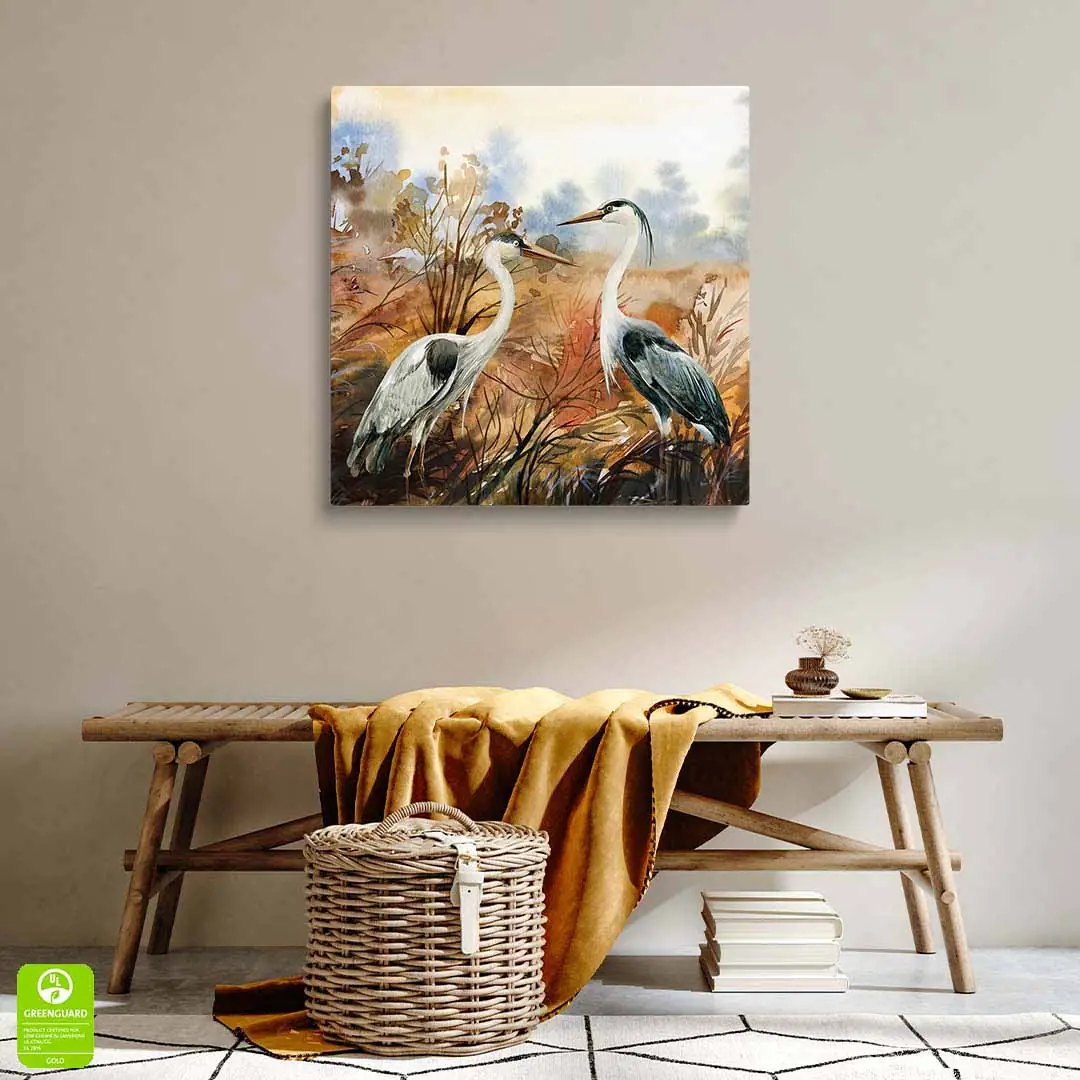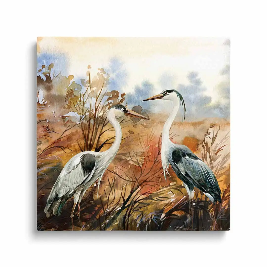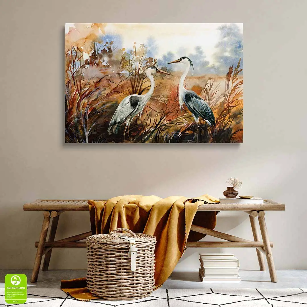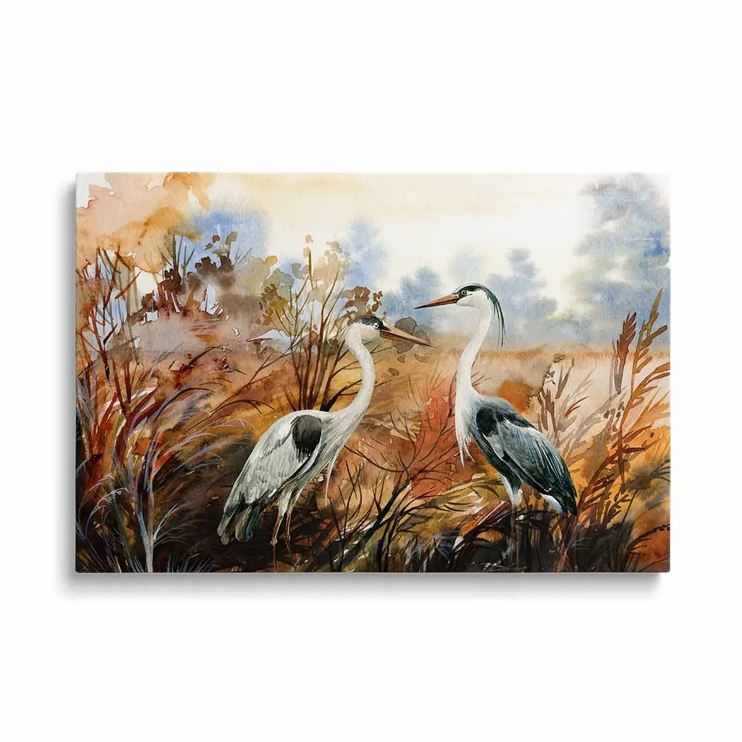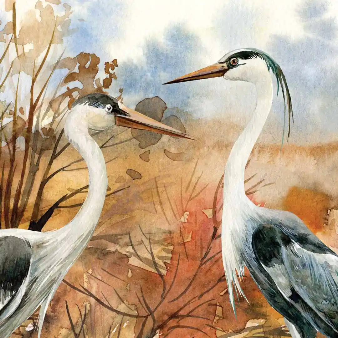 Obraz na szkle - Czaple na tle jesiennego krajobrazu