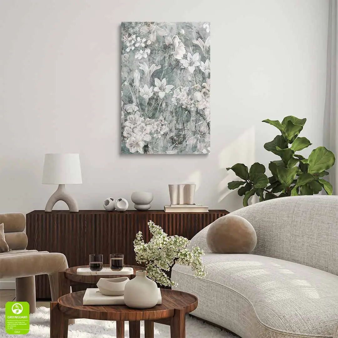 Obraz na szkle - Delikatne białe kwiaty – elegancka florystyczna kompozycja na przetartym tle