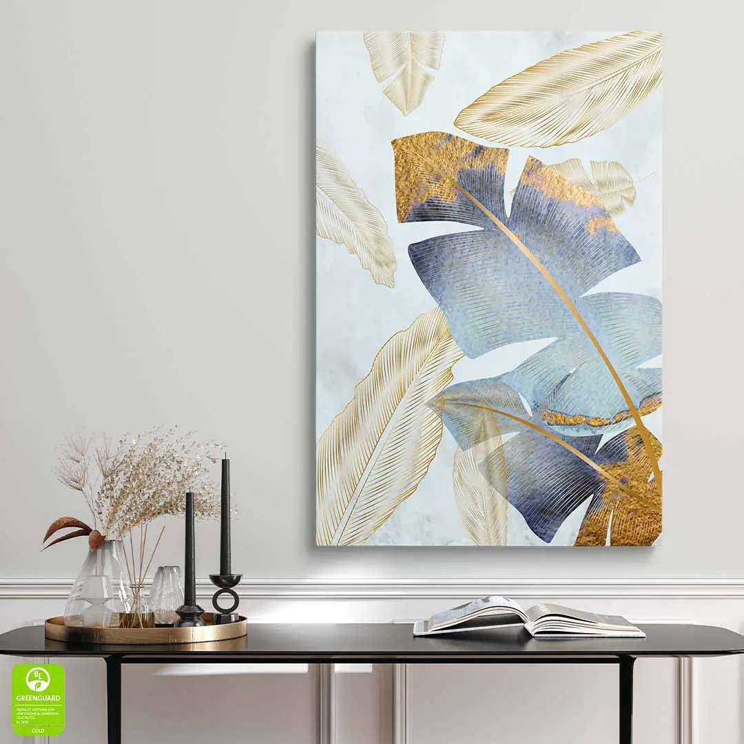 - techniką druku - proces drukowania wykorzystuje inne metody tworzenia kolorów (tzw. "przestrzeń barw") niż te, które stosowane są na ekranach komputera; kolory drukowane mogą wyglądać również nieco inaczej na różnych materiałach (np. canvasie, flizelinie, papierze czy szkle itp.) i przy użyciu różnych tuszy, w naszym przypadku tuszy do druku UV; złote elementy nie są wybiórczo metalizowane - efekt uzyskany jest poprzez wydruk tekstury w kolorze złota;