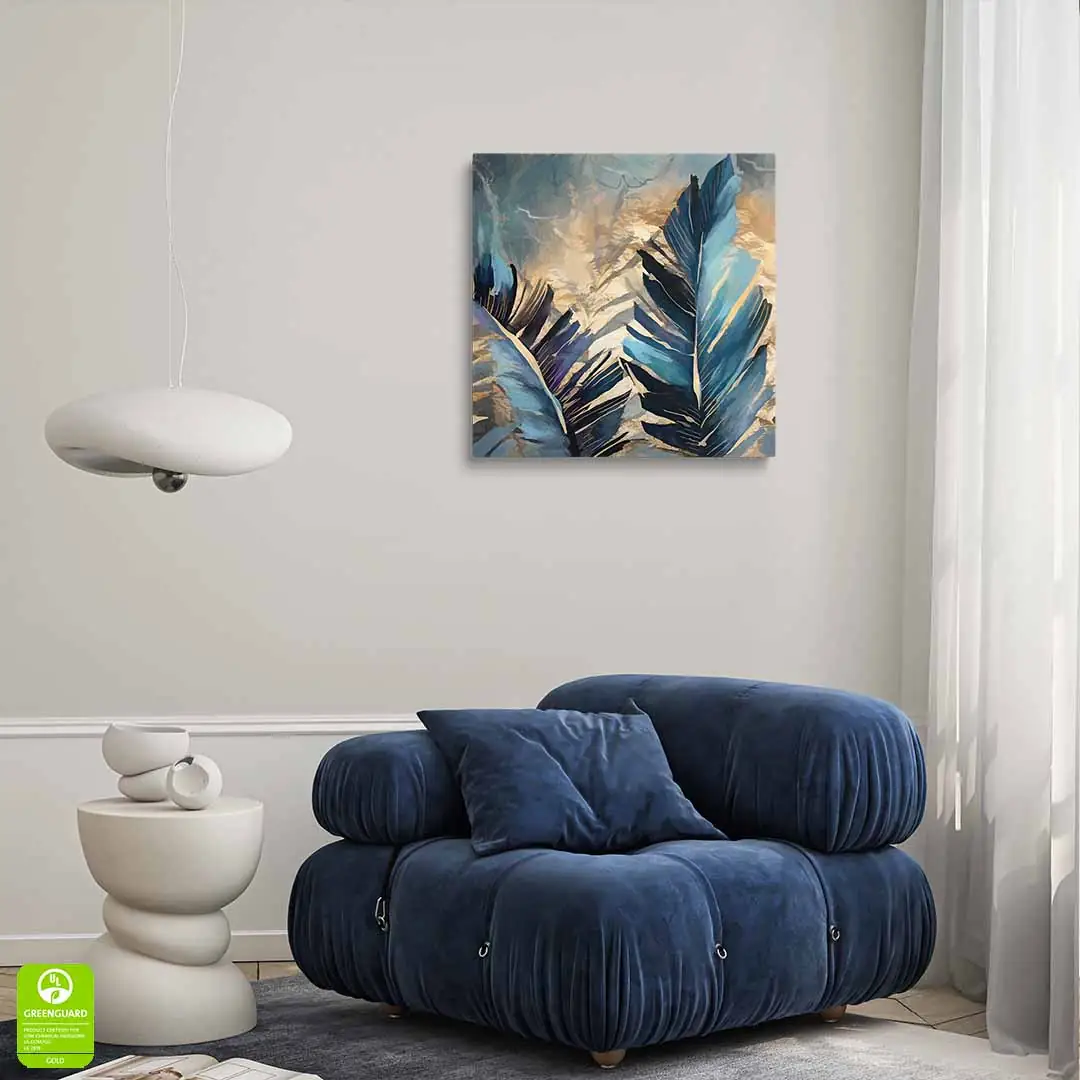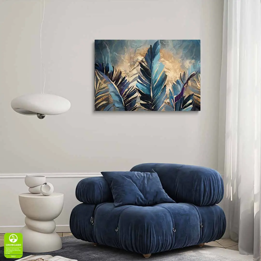 - techniką druku - proces drukowania wykorzystuje inne metody tworzenia kolorów (tzw. "przestrzeń barw") niż te, które stosowane są na ekranach komputera; kolory drukowane mogą wyglądać również nieco inaczej na różnych materiałach (np. canvasie, flizelinie, papierze czy szkle itp.) i przy użyciu różnych tuszy, w naszym przypadku tuszy do druku UV; złote elementy nie są wybiórczo metalizowane - efekt uzyskany jest poprzez wydruk tekstury w kolorze złota;