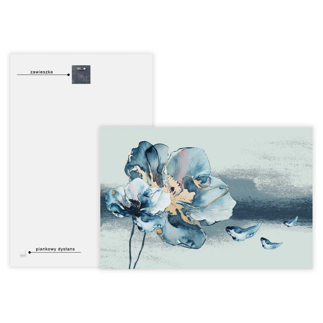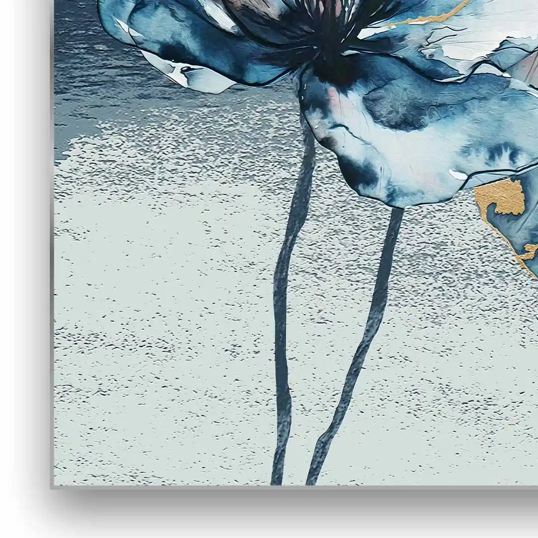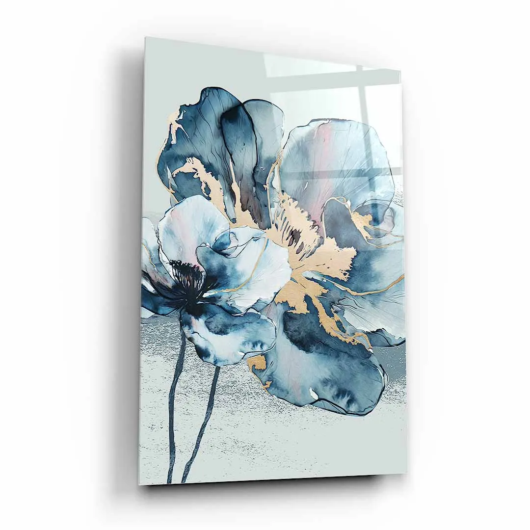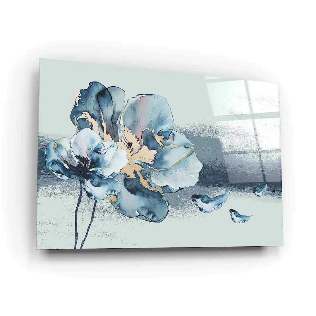 Obraz na szkle - Kwiat Akwarela - Błękitno-Złoty Motyw do salonu i sypialni