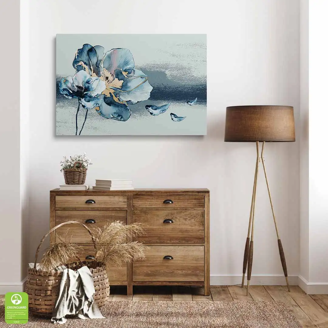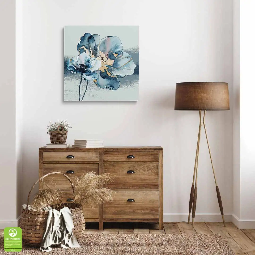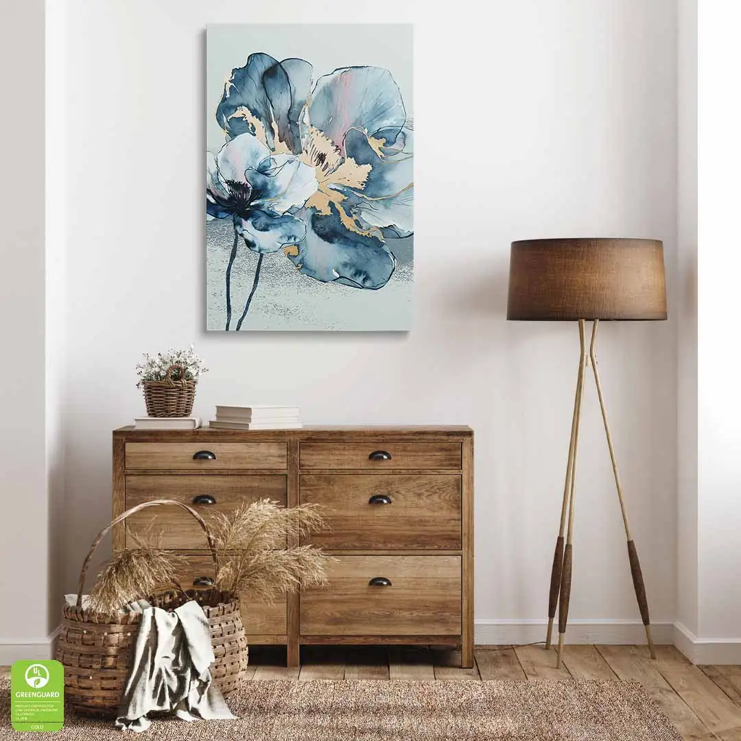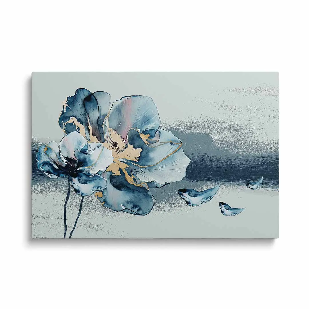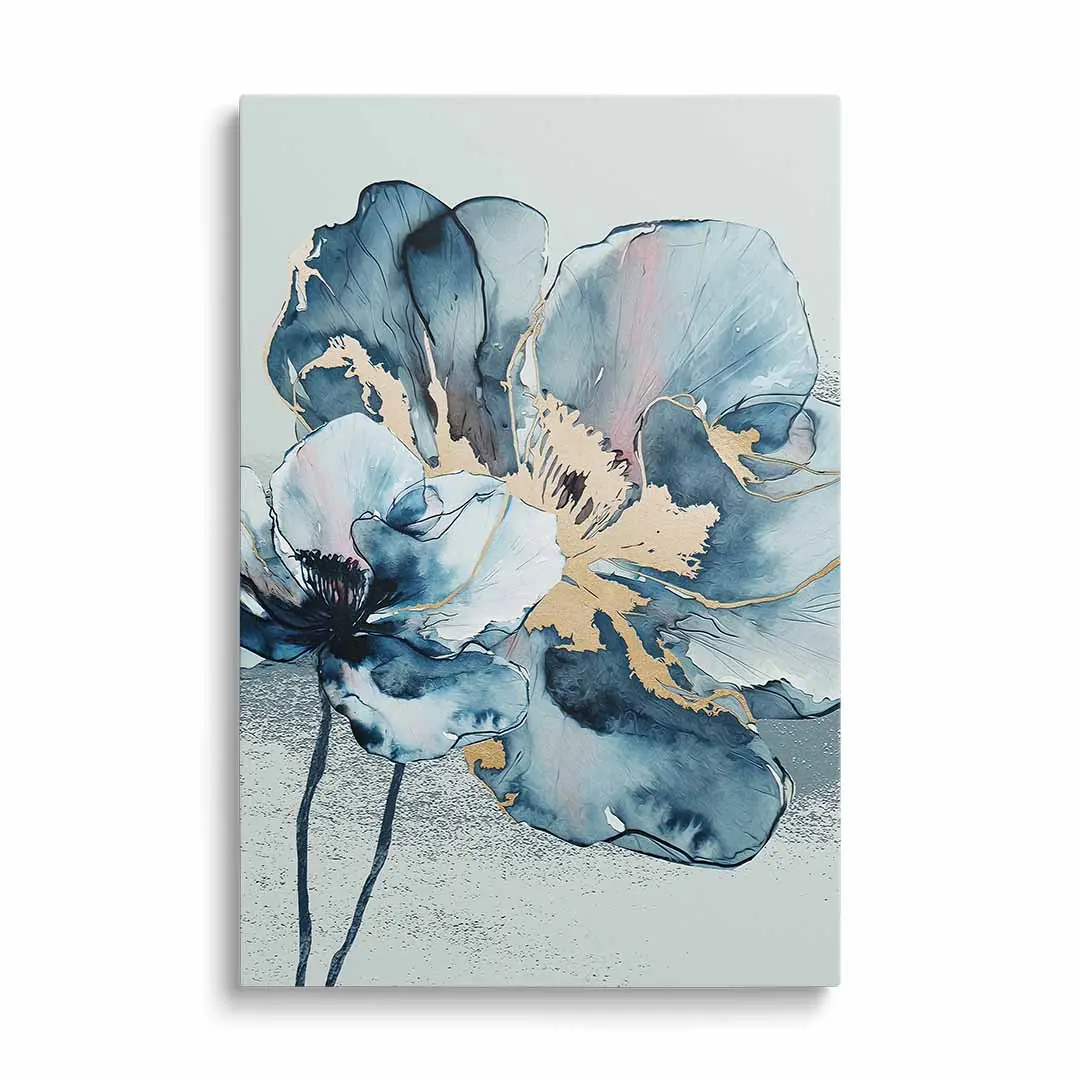 Obraz na szkle - Kwiat Akwarela - Błękitno-Złoty Motyw do salonu i sypialni