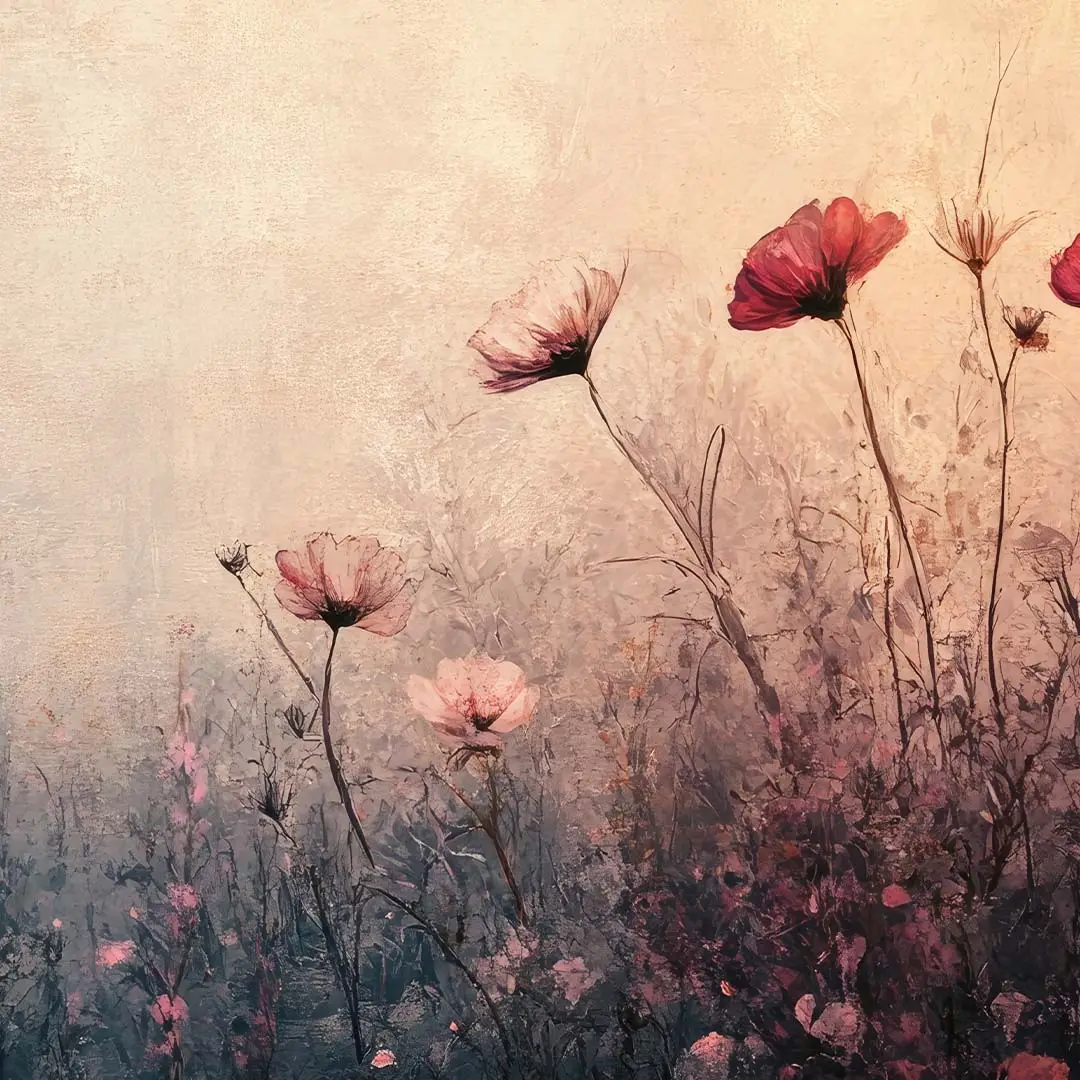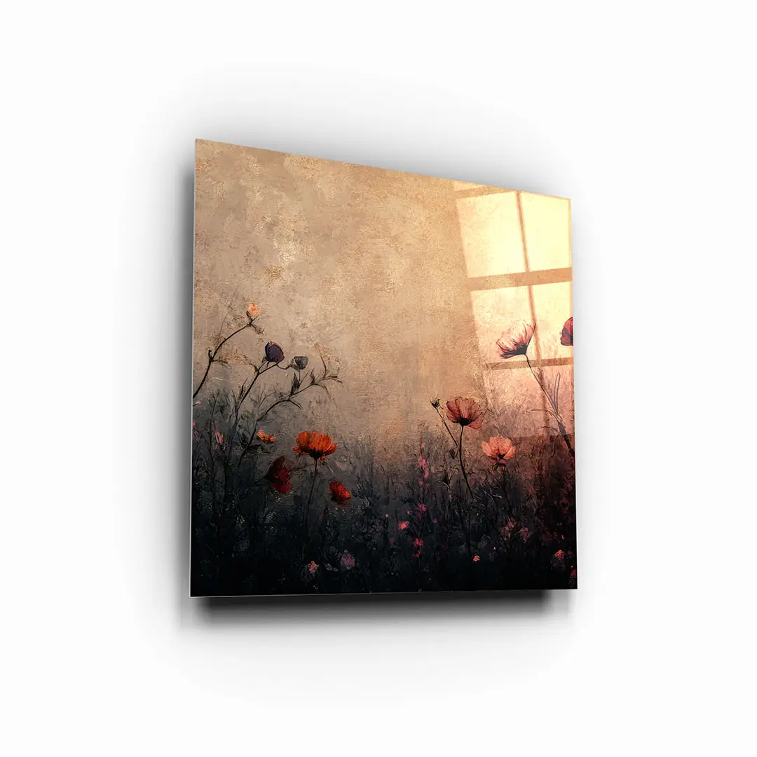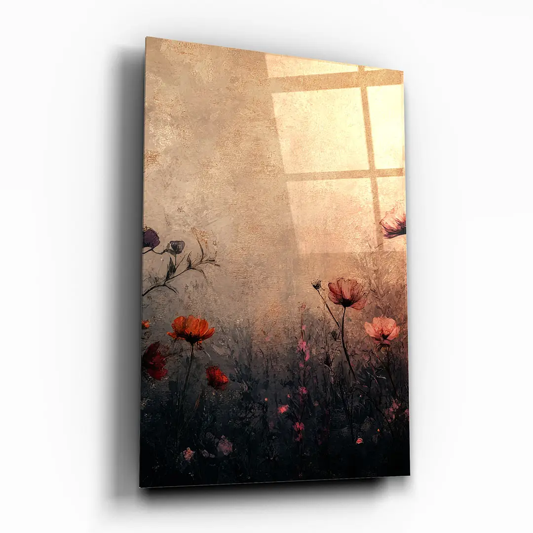 Obraz na szkle - Kwiatowa Łąka o Zachodzie
