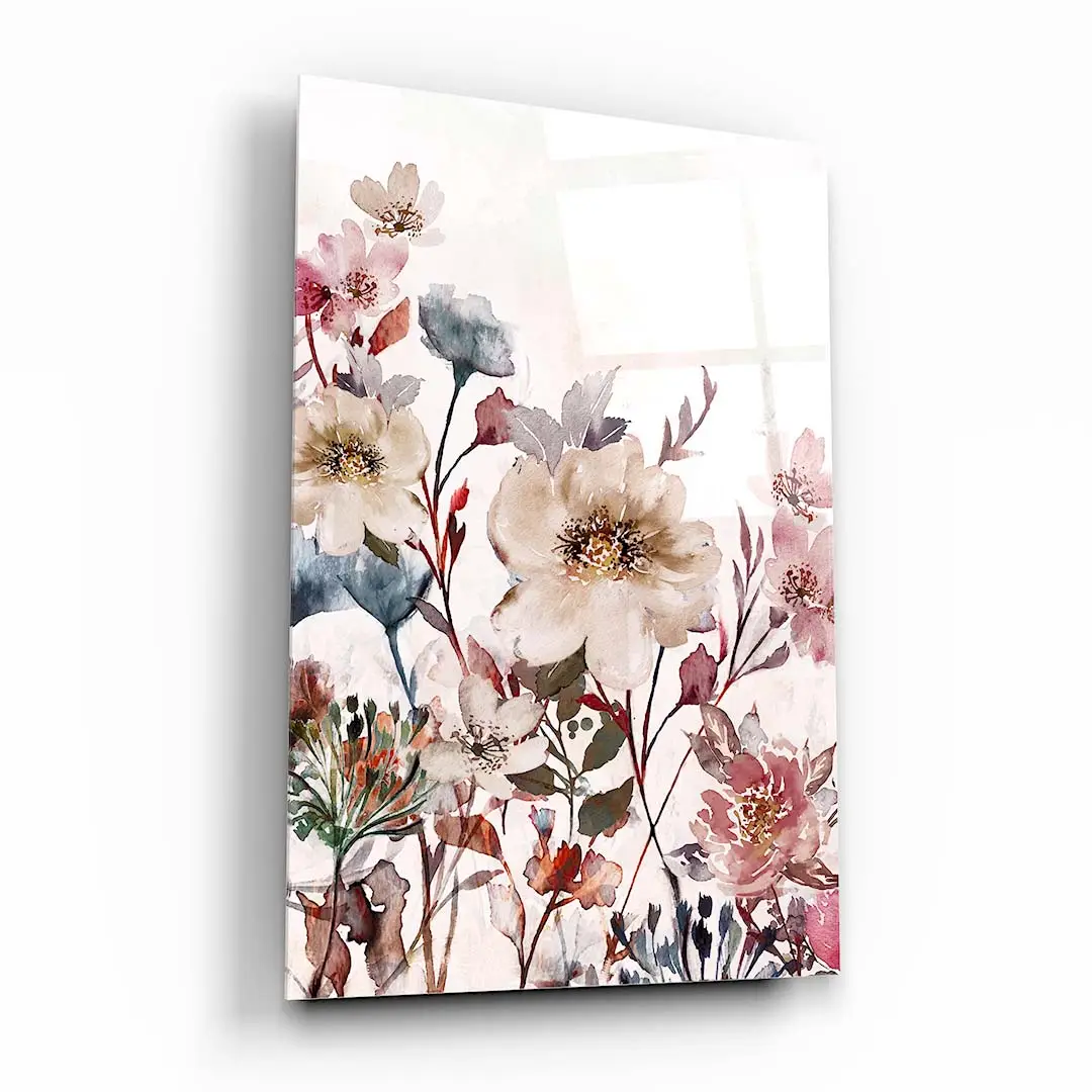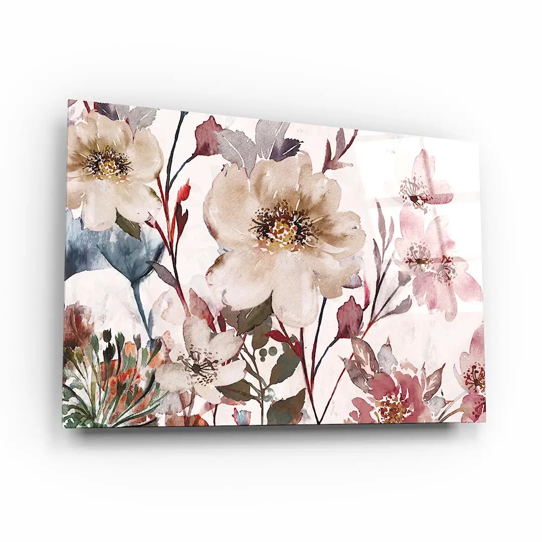 Obraz na szkle - Kwiaty Boho do sypialni i salonu - nowoczesna pastelowa akwarela