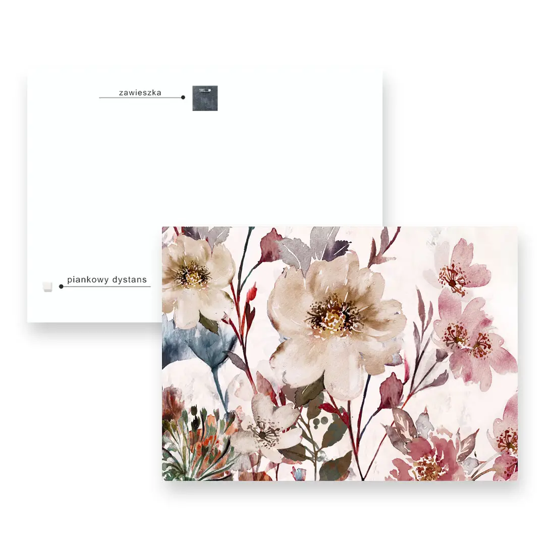 - powiększeniem - zarówno obrazy, plakaty, zegary jak i tapety mają rzeczywiste wymiary zdecydowanie większe niż ekran komputera czy telefonu, gdzie prezentujemy wzór w znacznym pomniejszeniu, co powoduje, iż kolory mogą wydawać się intensywniejsze.