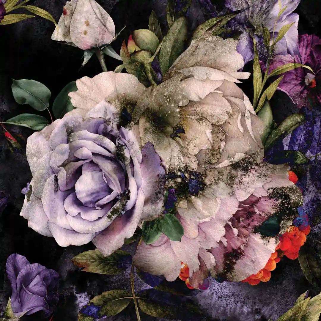 Obraz na szkle - Kwiecisty raj na ciemnym tle
