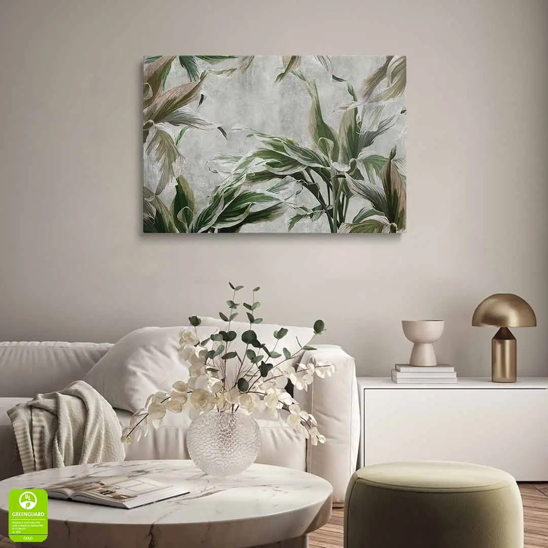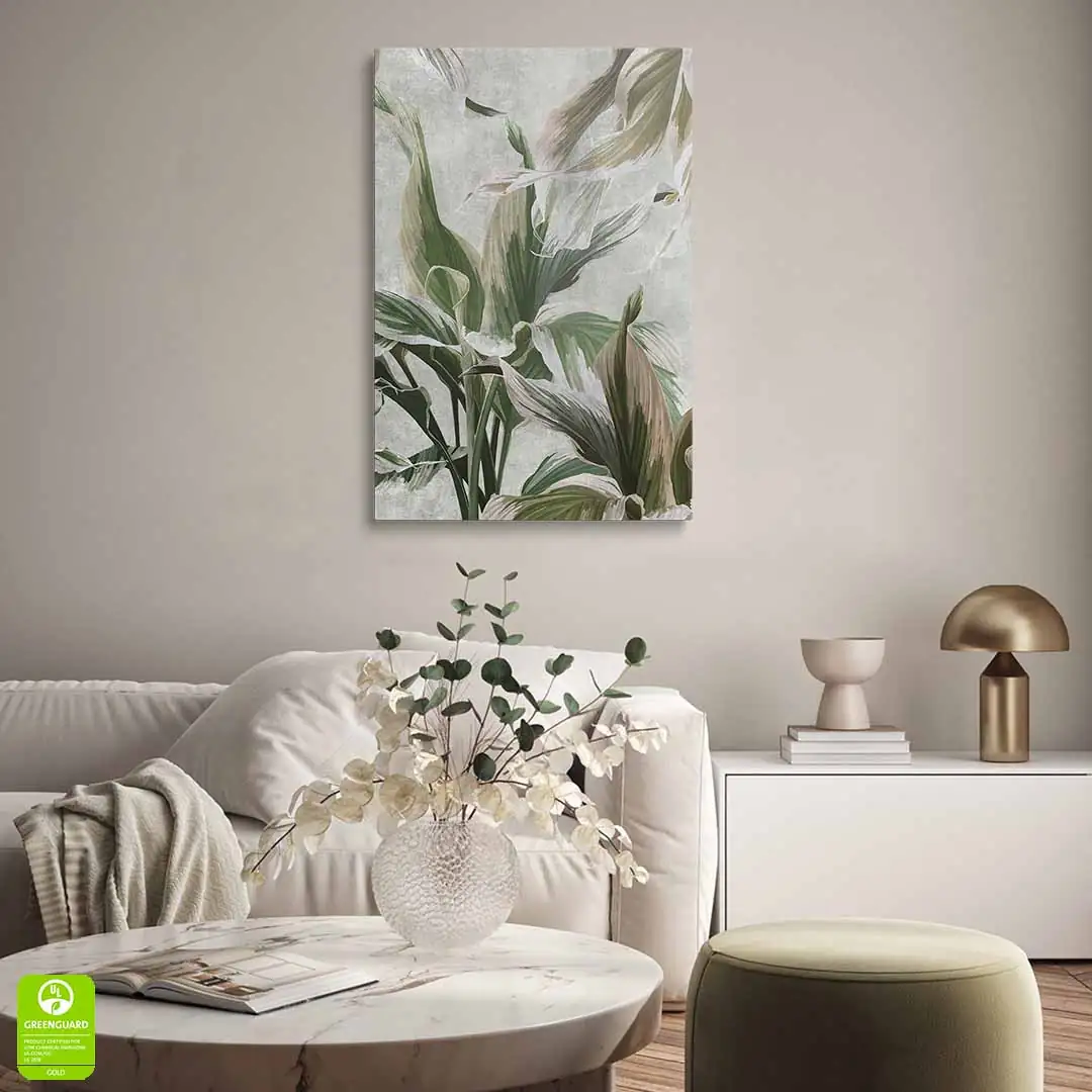 - techniką druku - proces drukowania wykorzystuje inne metody tworzenia kolorów (tzw. "przestrzeń barw") niż te, które stosowane są na ekranach komputera; kolory drukowane mogą wyglądać również nieco inaczej na różnych materiałach (np. canvasie, flizelinie, papierze czy szkle itp.) i przy użyciu różnych tuszy, w naszym przypadku tuszy do druku UV; złote elementy nie są wybiórczo metalizowane - efekt uzyskany jest poprzez wydruk tekstury w kolorze złota;