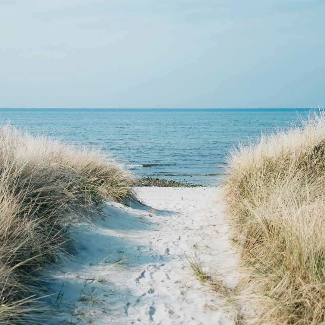 Obraz na szkle - Malowniczy widok morza - Ścieżka przez wydmy na plaży