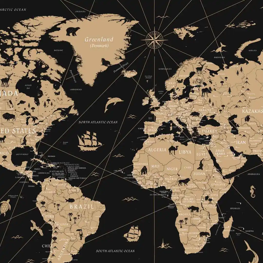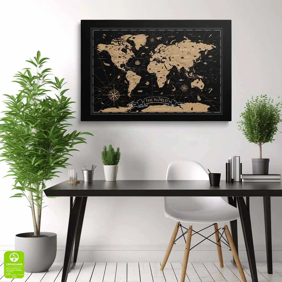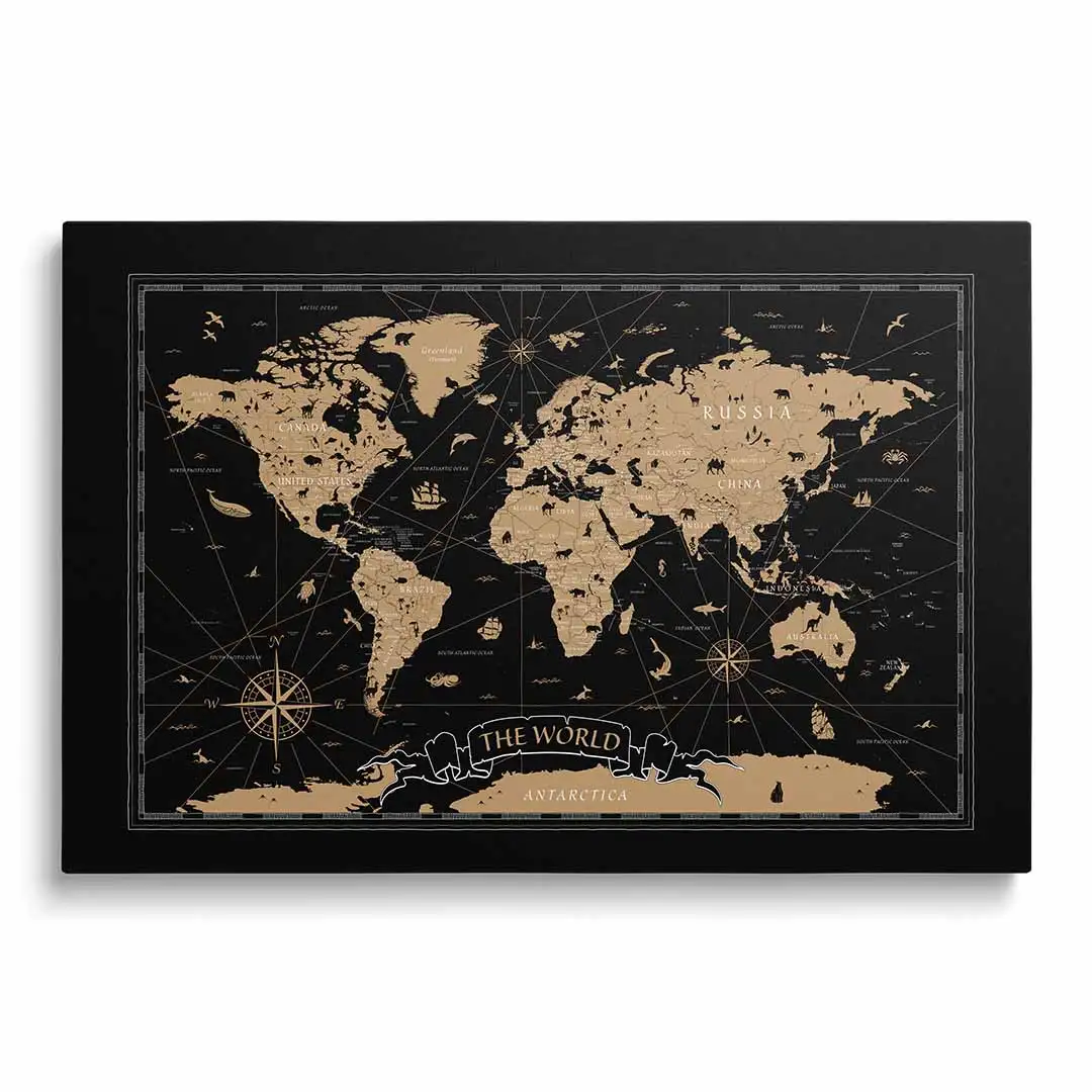 Obraz na szkle - Mapa świata w stylu vintage na czarnym tle