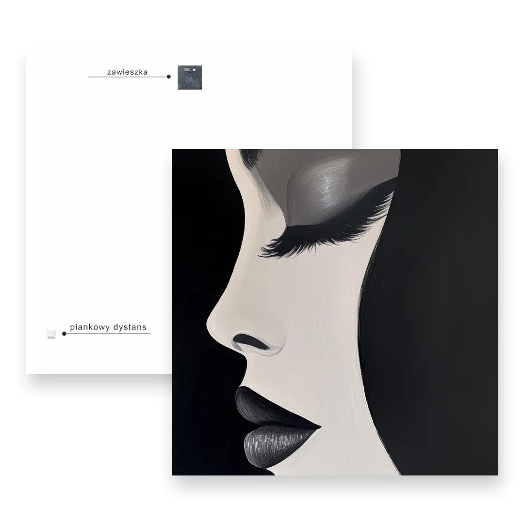 Metalowe zawieszki - Każdy wyprodukowany przez nas szklany obraz wyposażony jest w metalową zawieszkę, która ułatwia proces montażu. Sprawia to, że nasze produkty są gotowe do powieszenia na ścianie - zaraz po rozpakowaniu. Produkt jest kompletny.