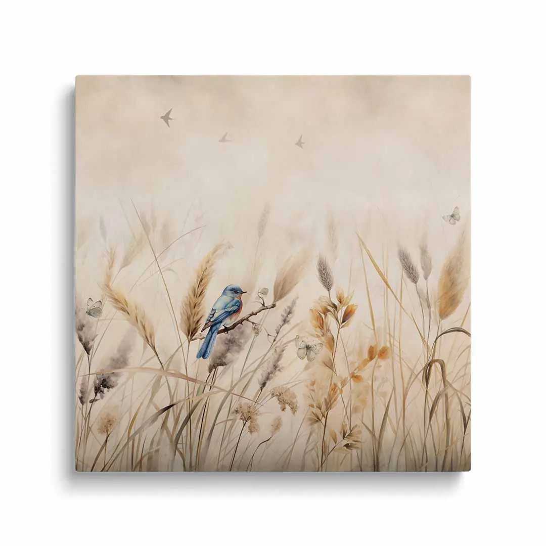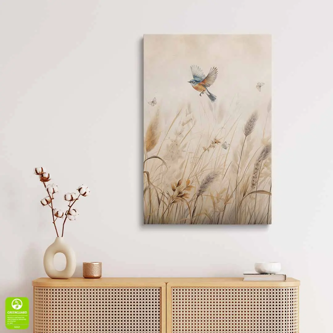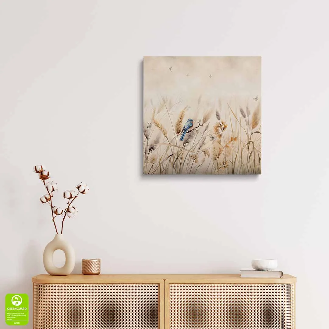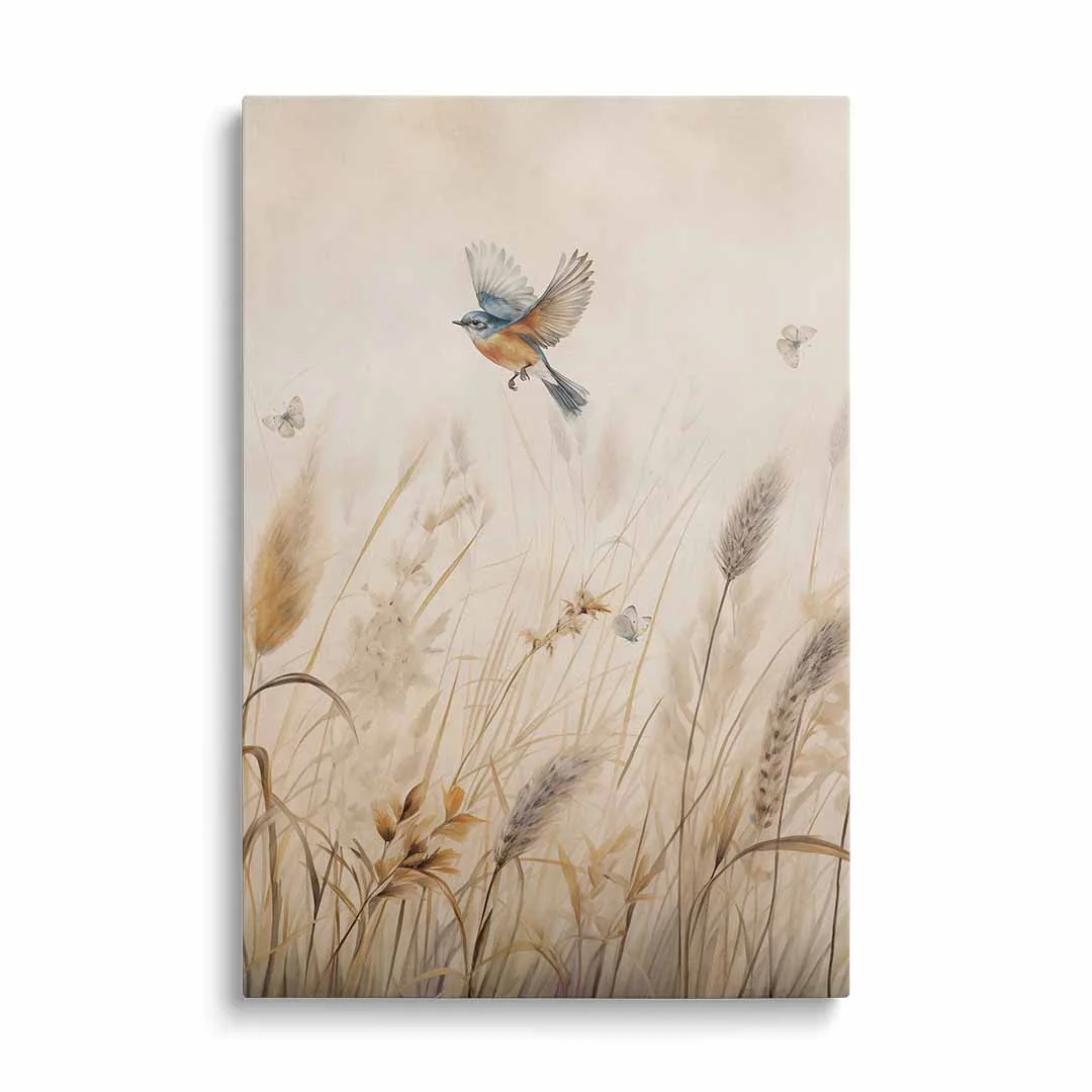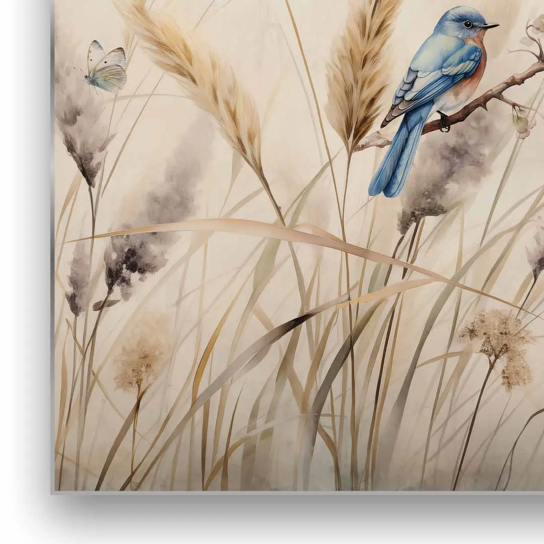 Obraz na szkle - Natura - Łąka z ptakami - Subtelna dekoracja do sypialni, salonu lub jadalni, styl rustykalny, boho