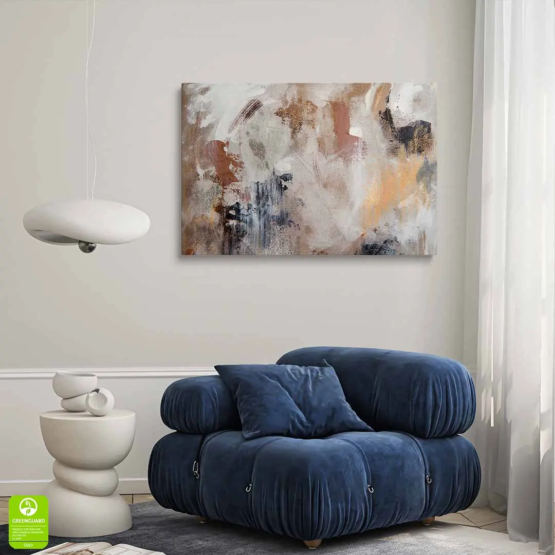 - techniką druku - proces drukowania wykorzystuje inne metody tworzenia kolorów (tzw. "przestrzeń barw") niż te, które stosowane są na ekranach komputera; kolory drukowane mogą wyglądać również nieco inaczej na różnych materiałach (np. canvasie, flizelinie, papierze czy szkle itp.) i przy użyciu różnych tuszy, w naszym przypadku tuszy do druku UV; złote elementy nie są wybiórczo metalizowane - efekt uzyskany jest poprzez wydruk tekstury w kolorze złota;