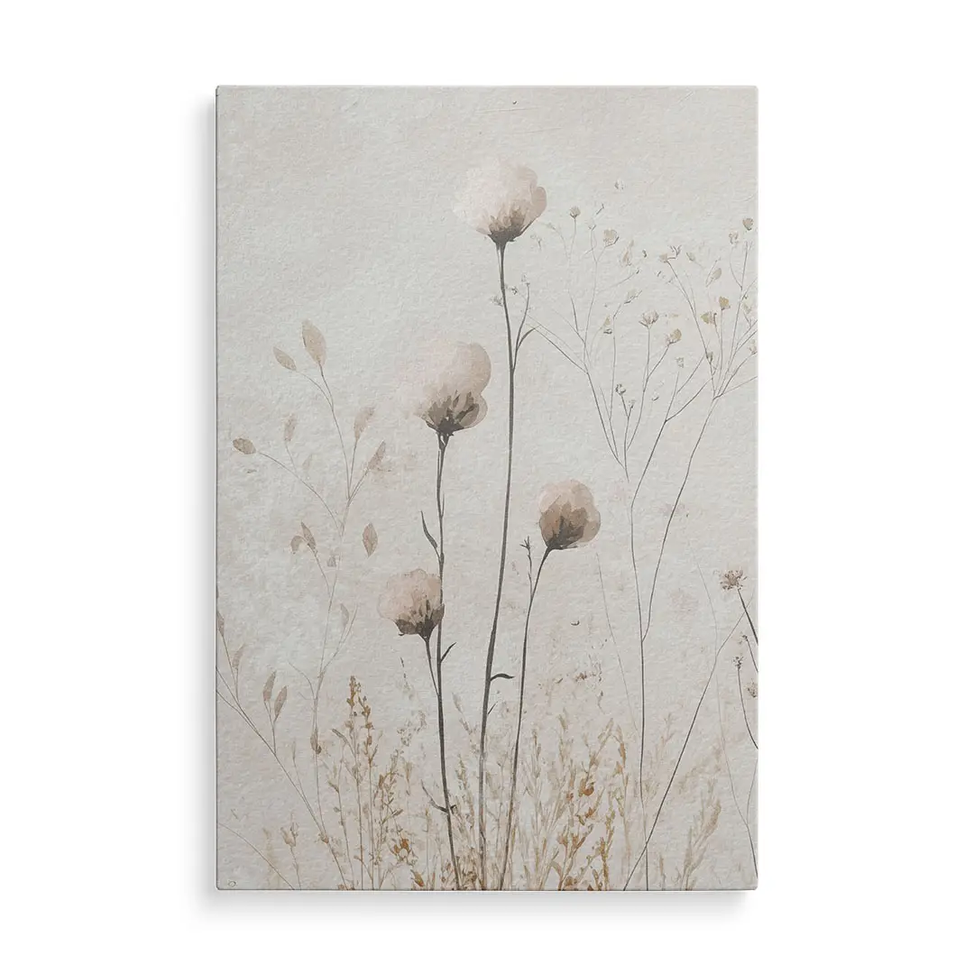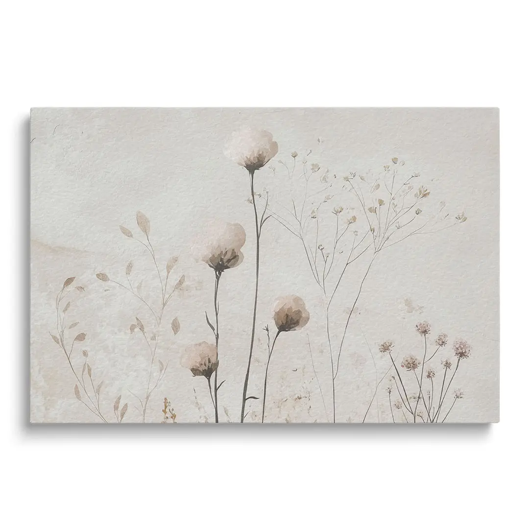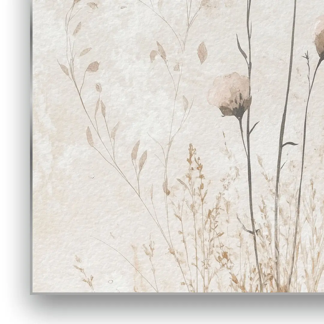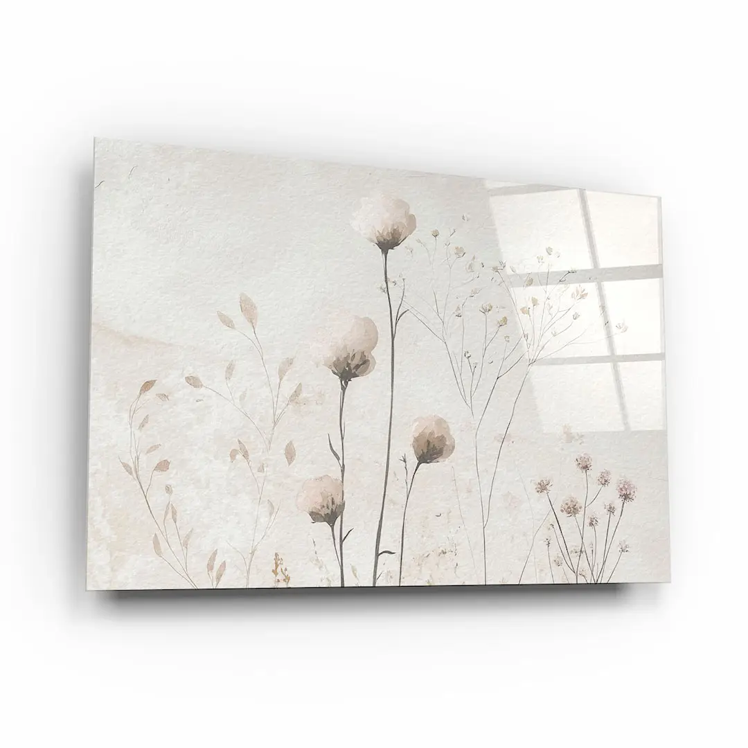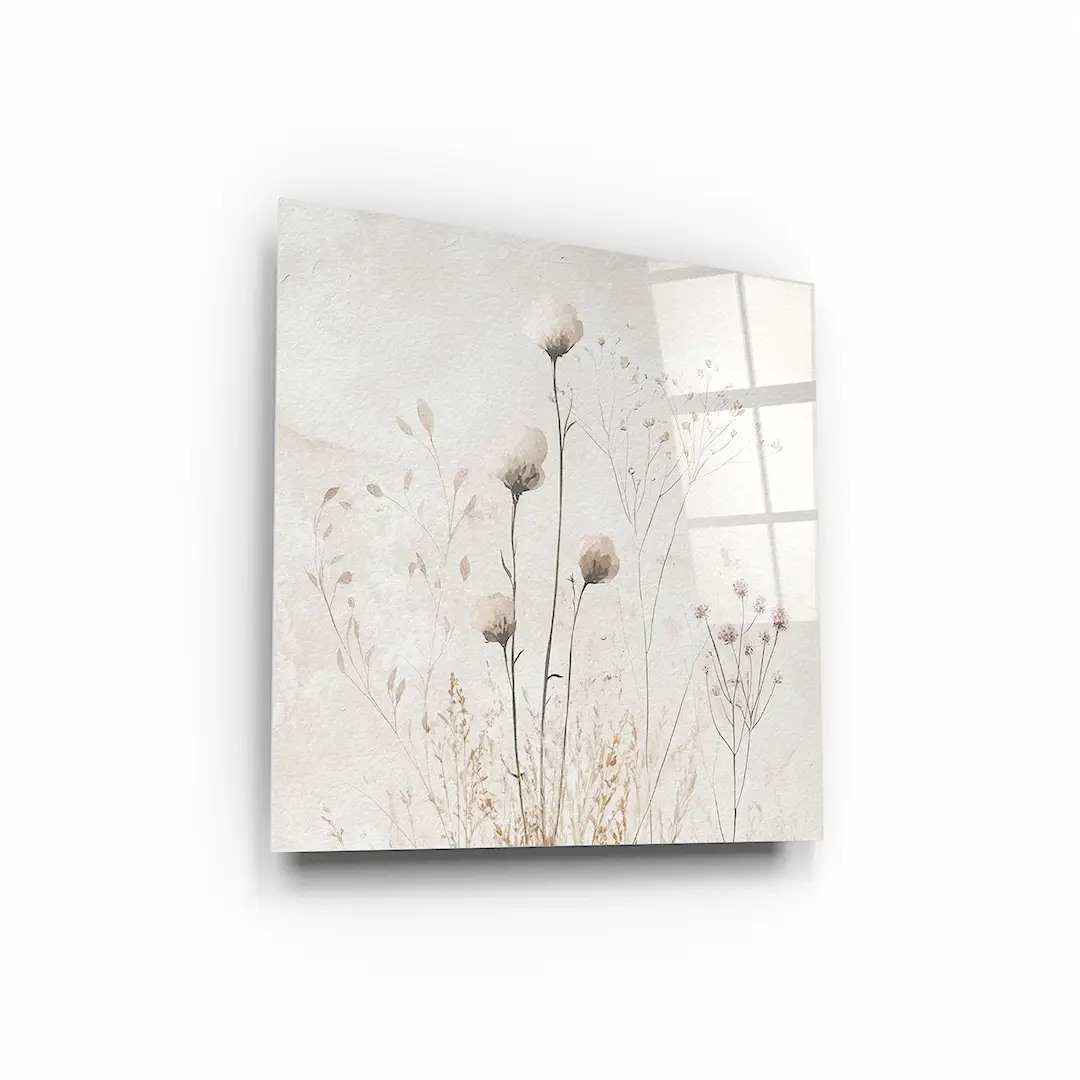 Obraz na szkle - Polne Kwiaty – Beżowa Tekstura do Sypialni lub Salonu