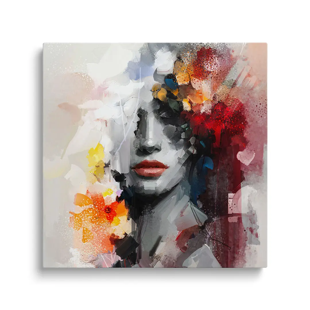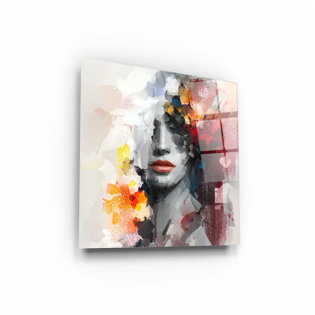 Obraz na szkle - Portret Kobiety – Kolorowa Abstrakcja