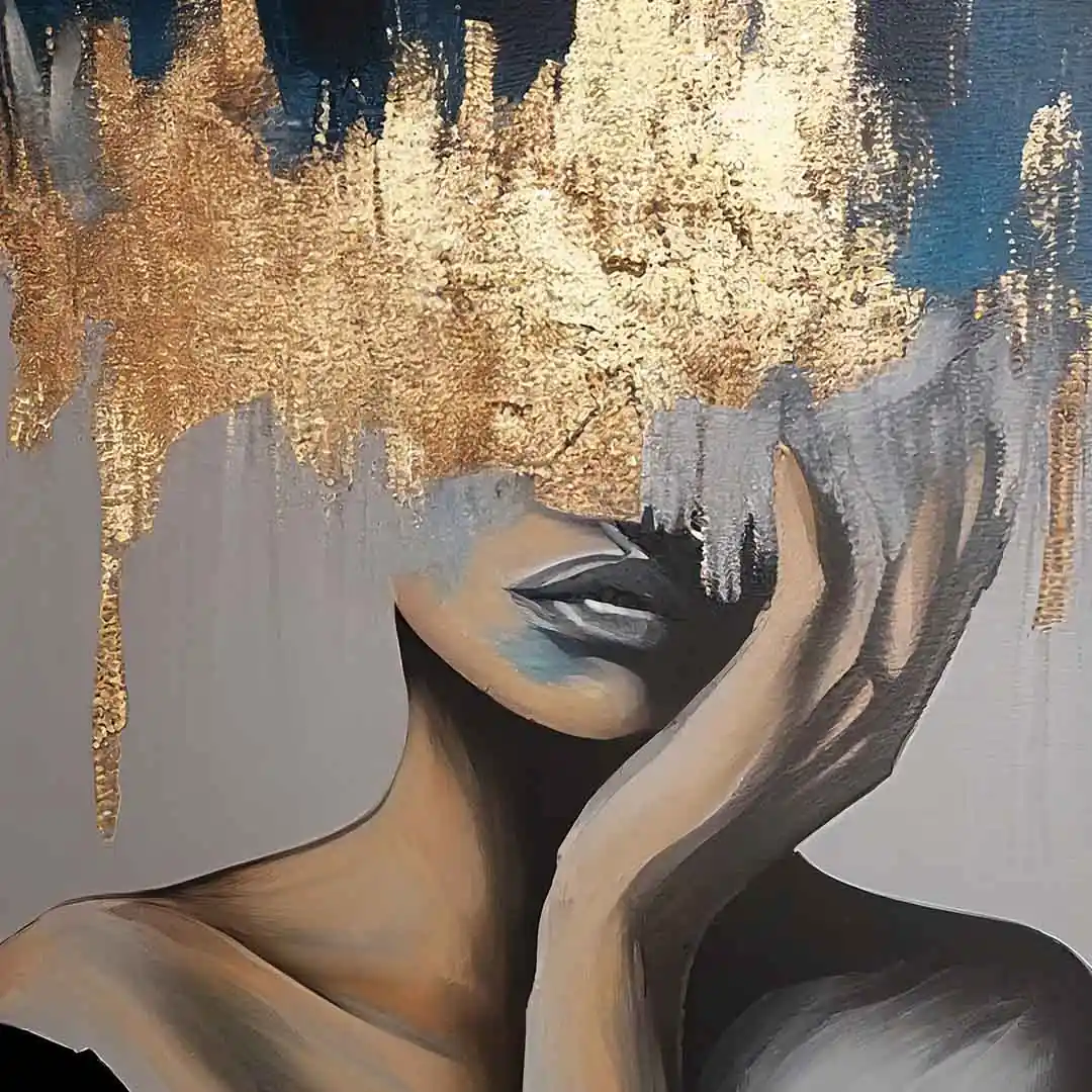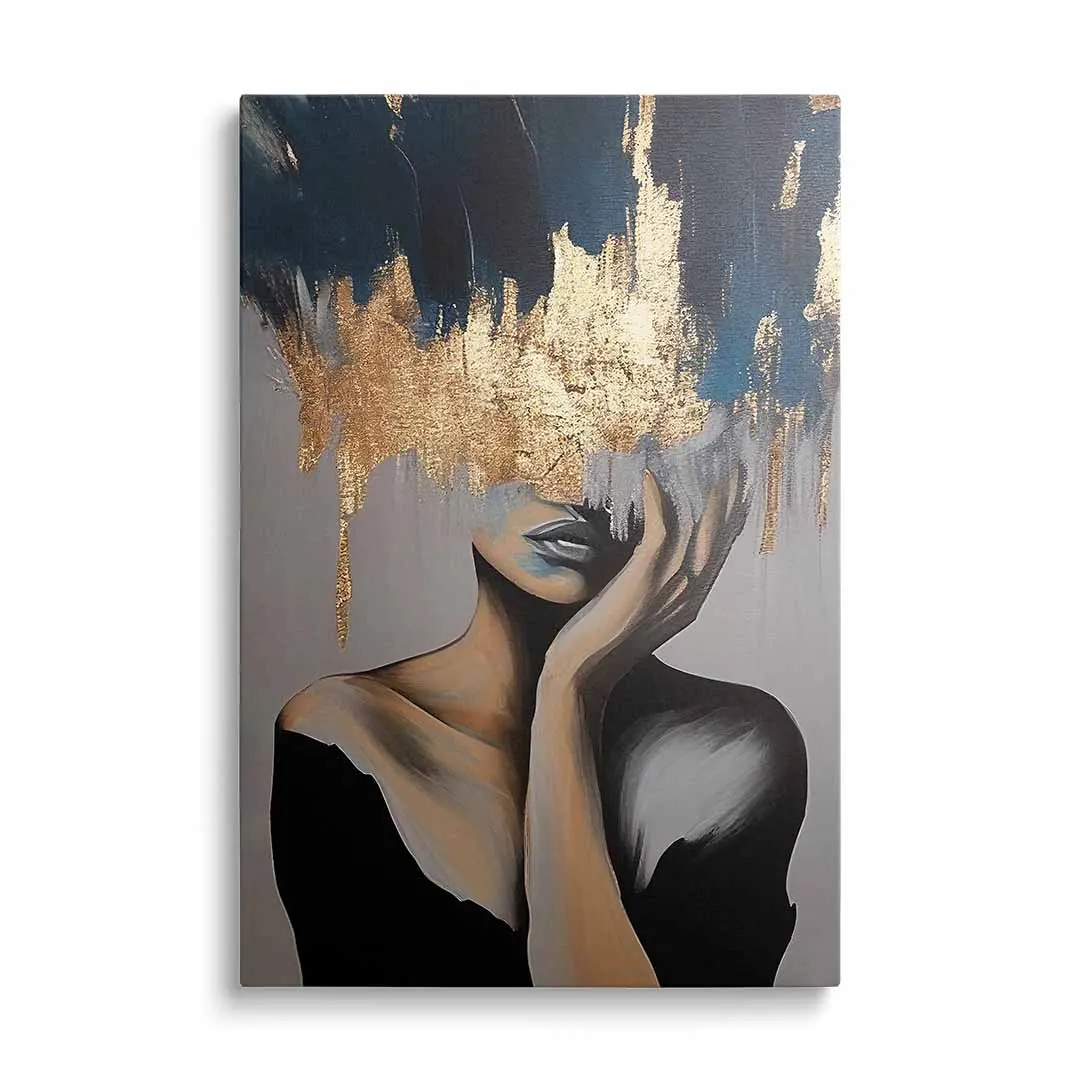 Obraz na szkle - Portret kobiety za złotą zasłoną