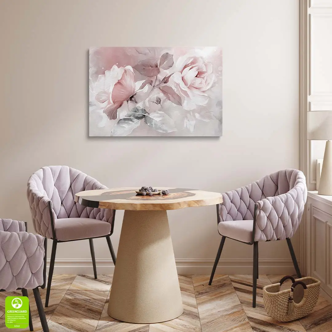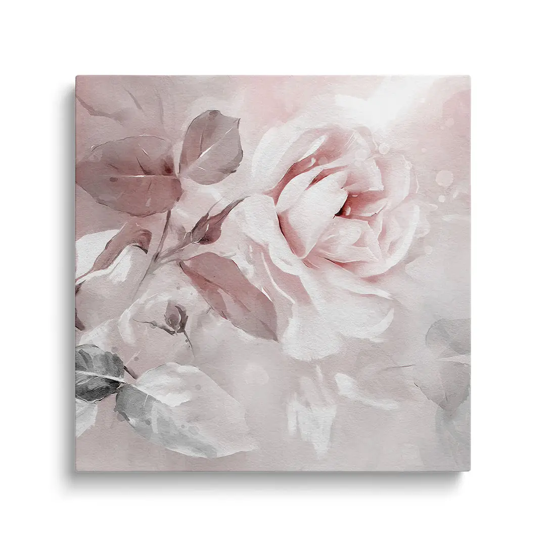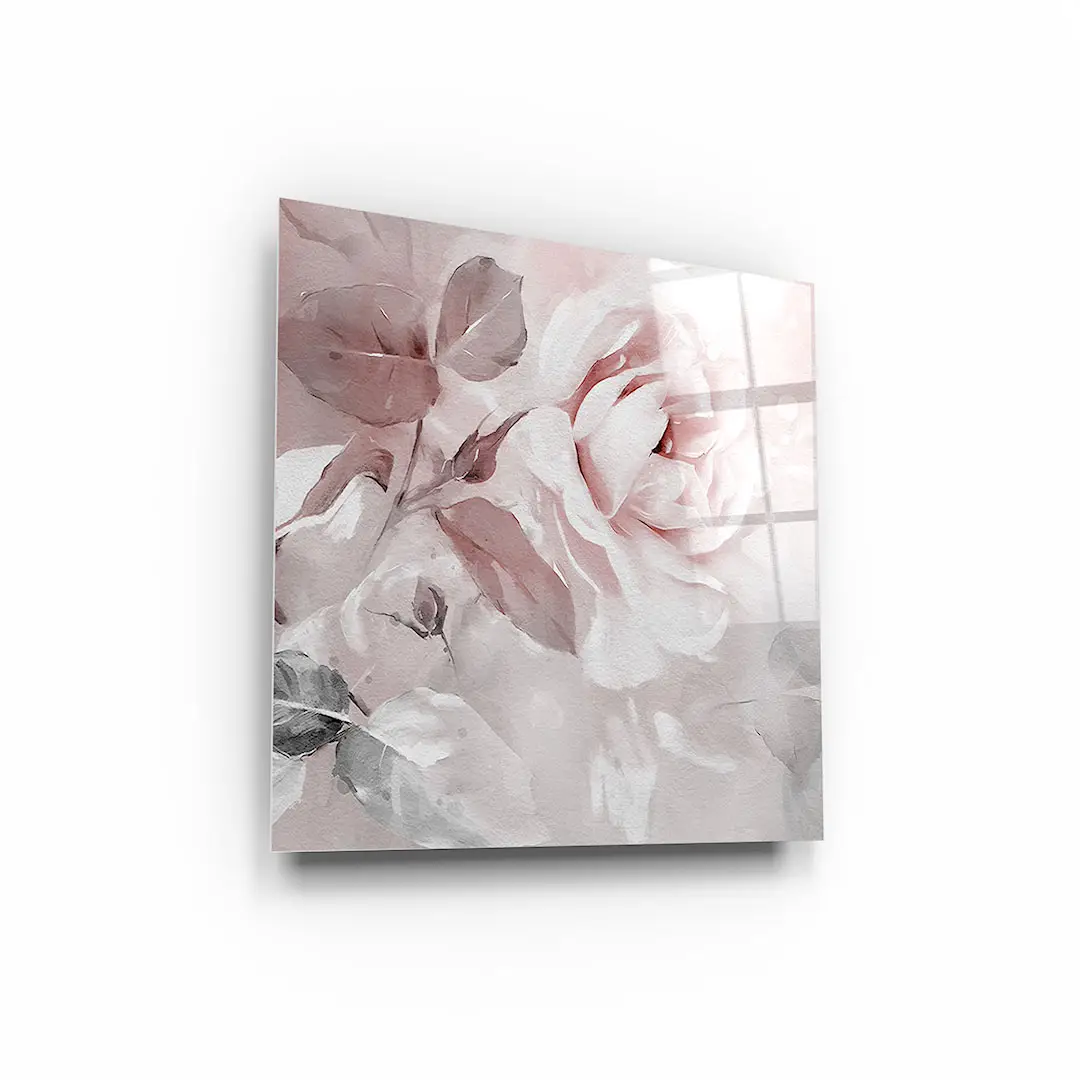 Obraz na szkle - Romantyczne Róże – Malarska dekoracja do sypialni, styl klasyczny i glamour, pudrowy róż i biel
