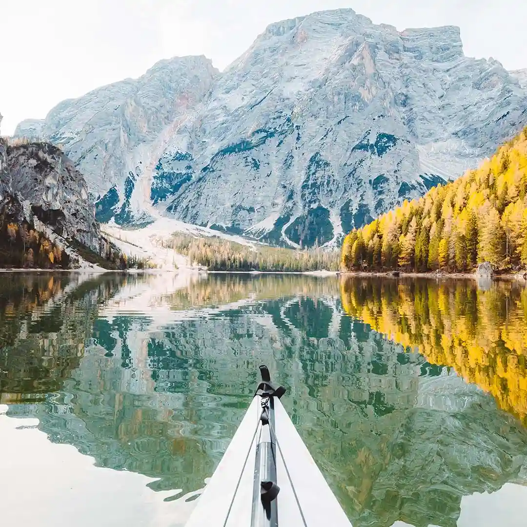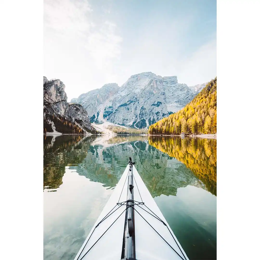Obraz na szkle - Wyprawa życia - Góry, Kajak, Jezioro, Natura, Krajobraz,