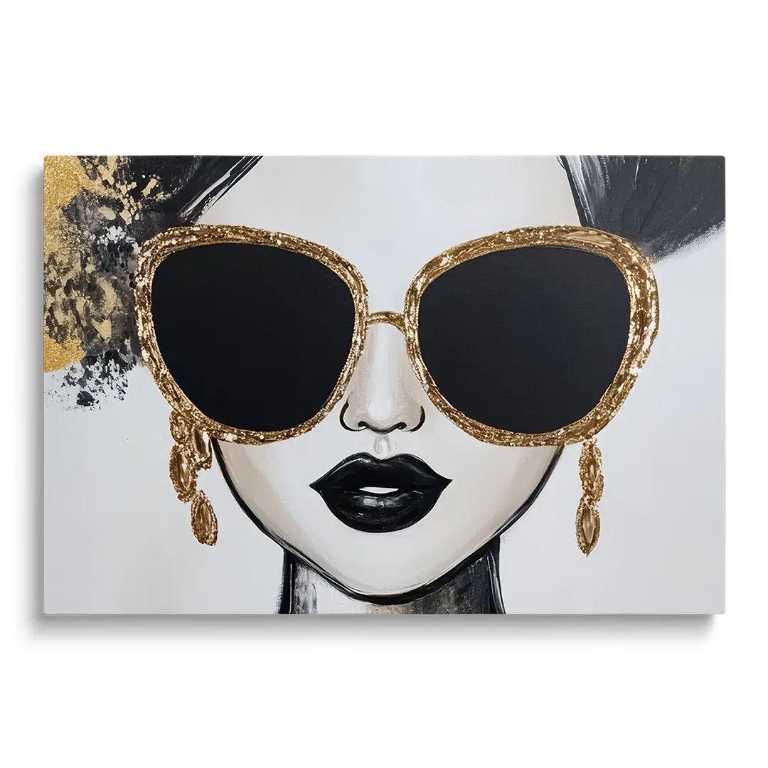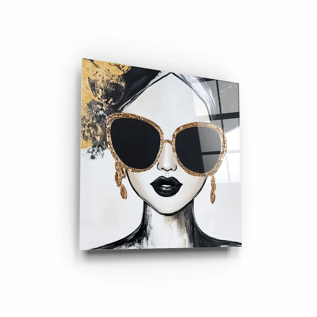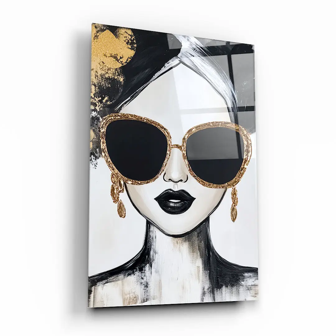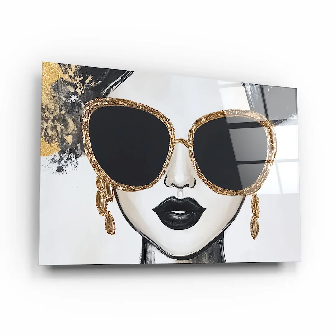 Obraz na szkle - Złota Ikona – Nowoczesny portret kobiety w okularach