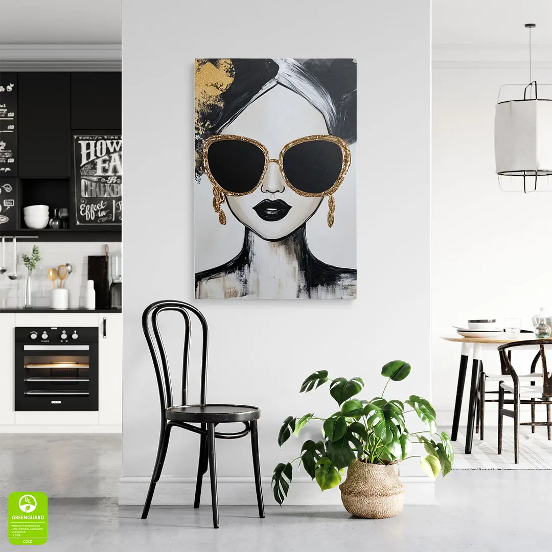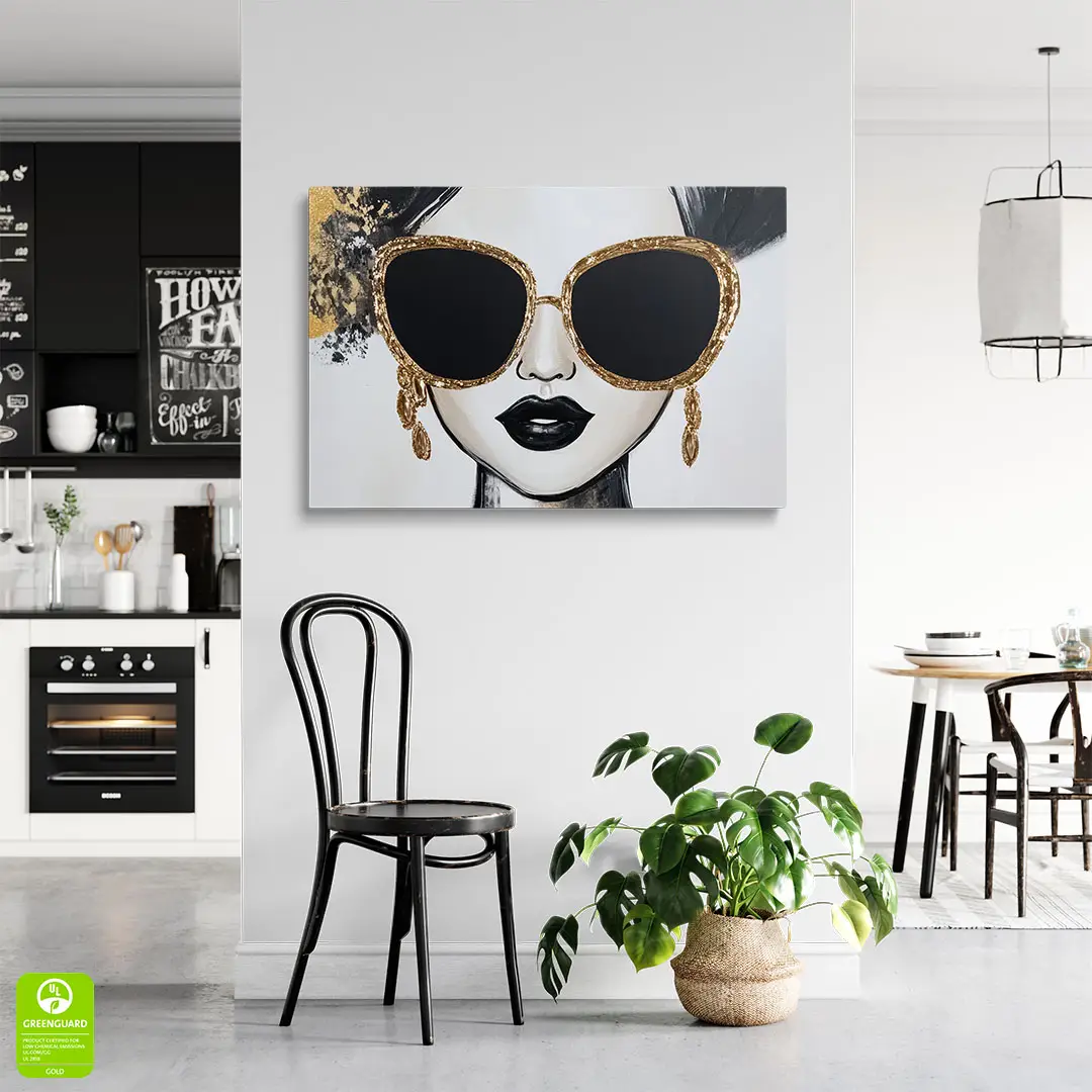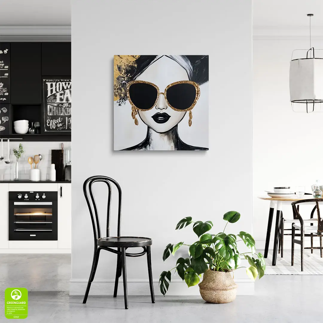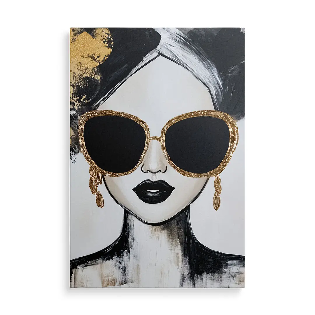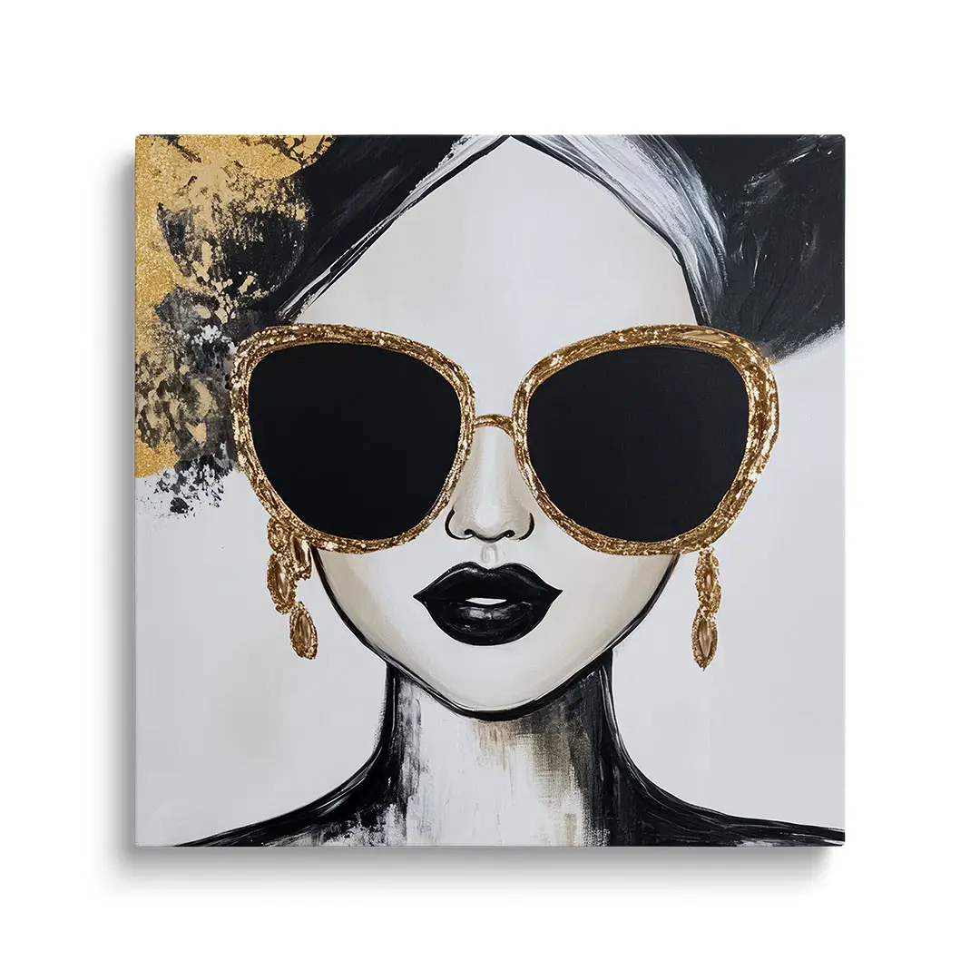Obraz na szkle - Złota Ikona – Nowoczesny portret kobiety w okularach