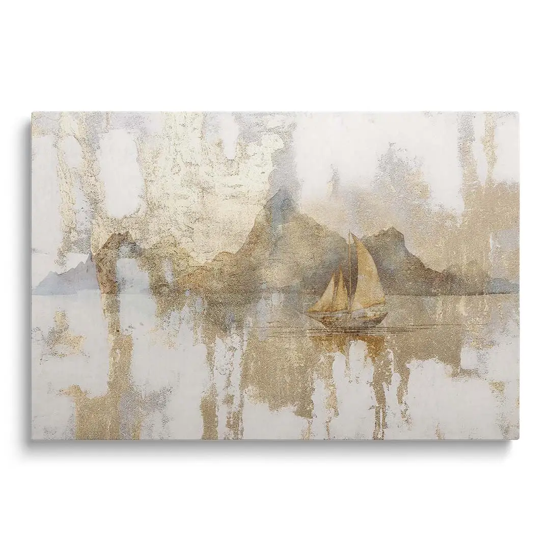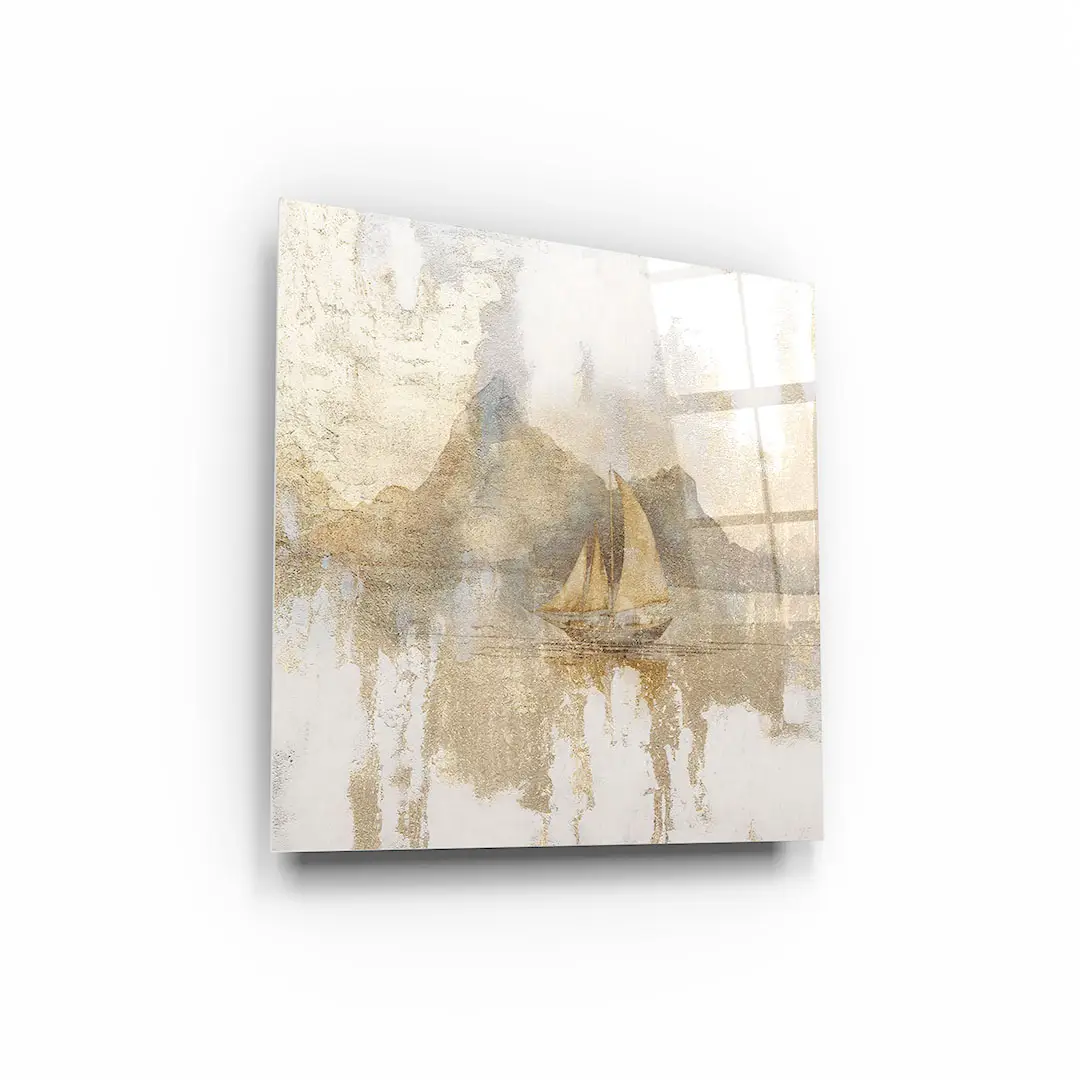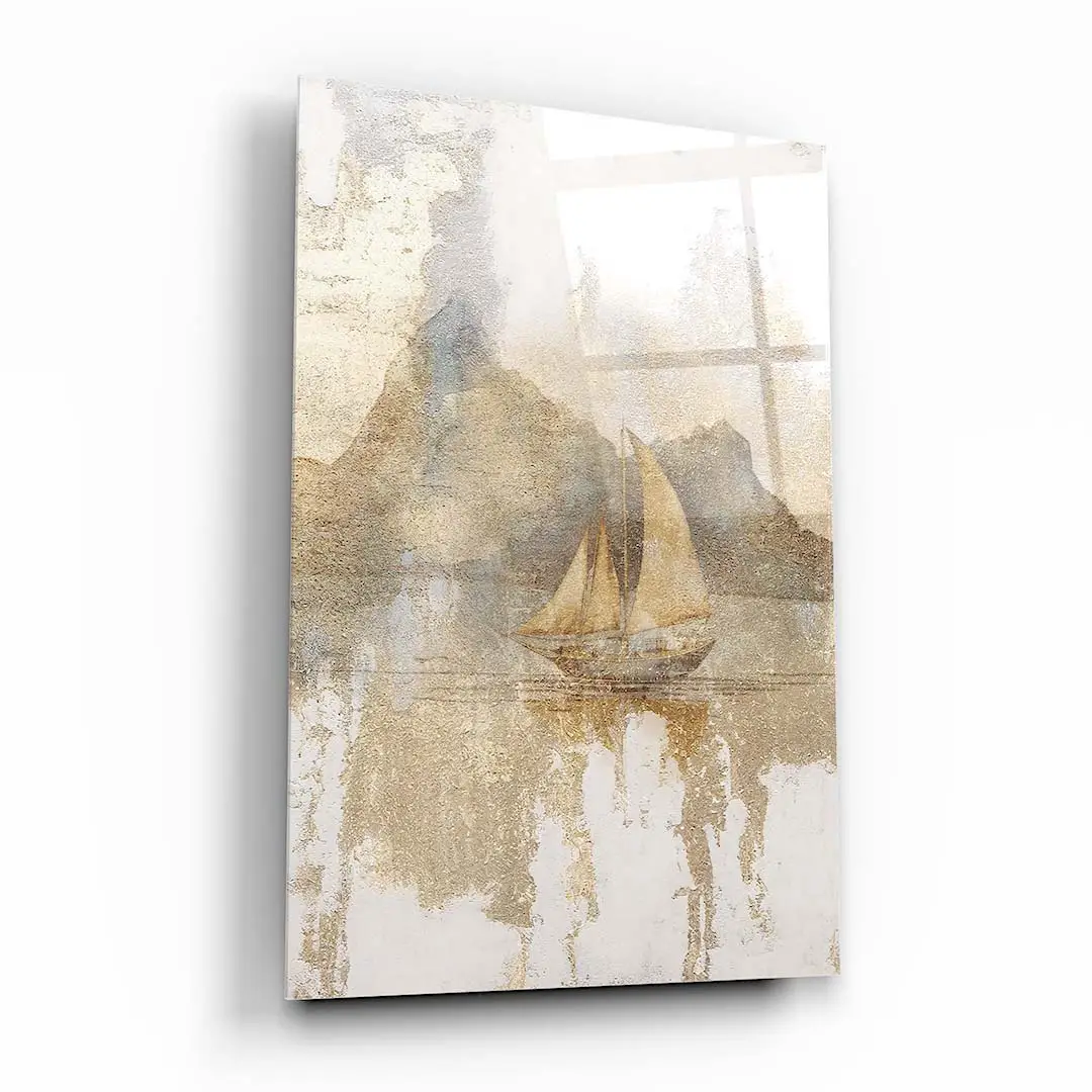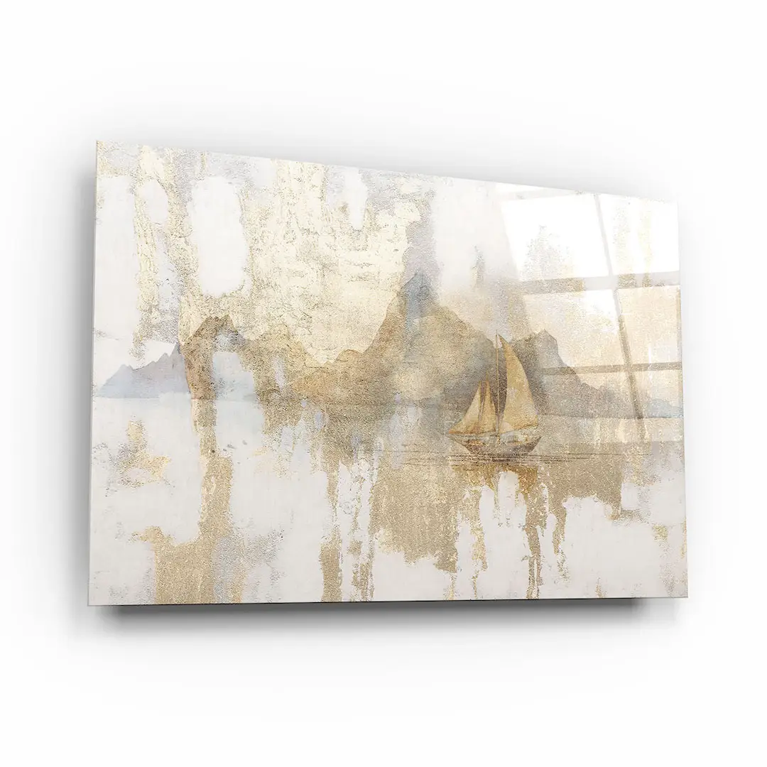 Obraz na szkle - Złota Żaglówka – Artystyczna dekoracja do salonu i sypialni