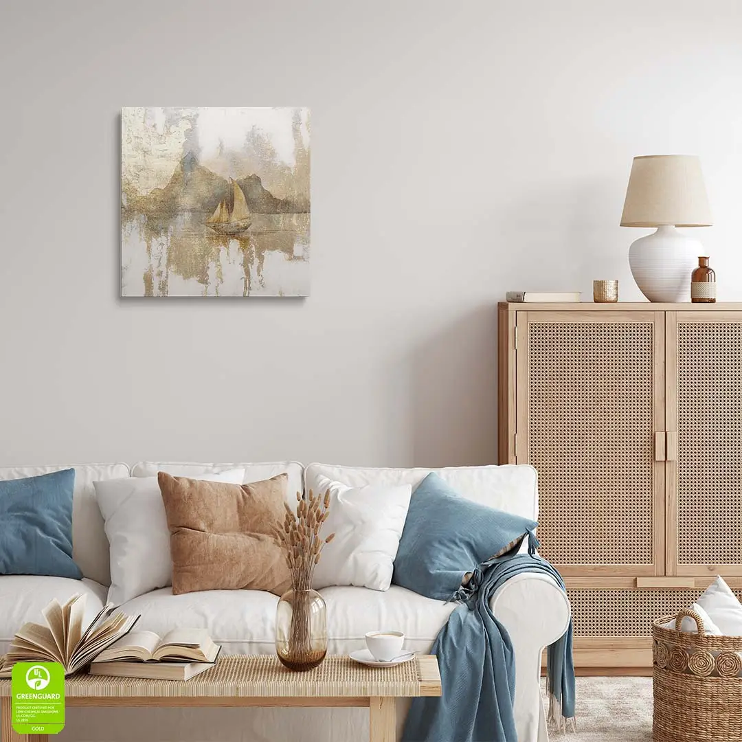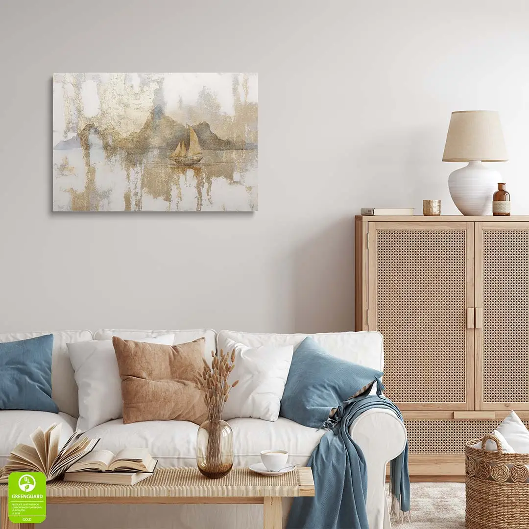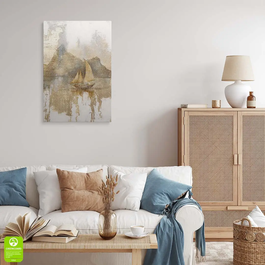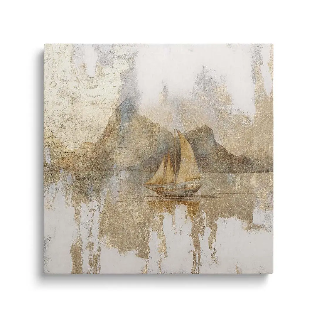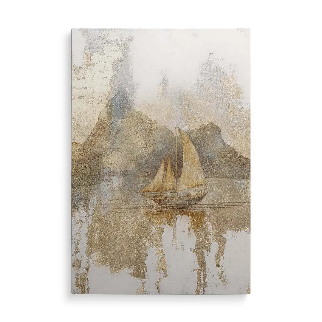 Obraz na szkle - Złota Żaglówka – Artystyczna dekoracja do salonu i sypialni