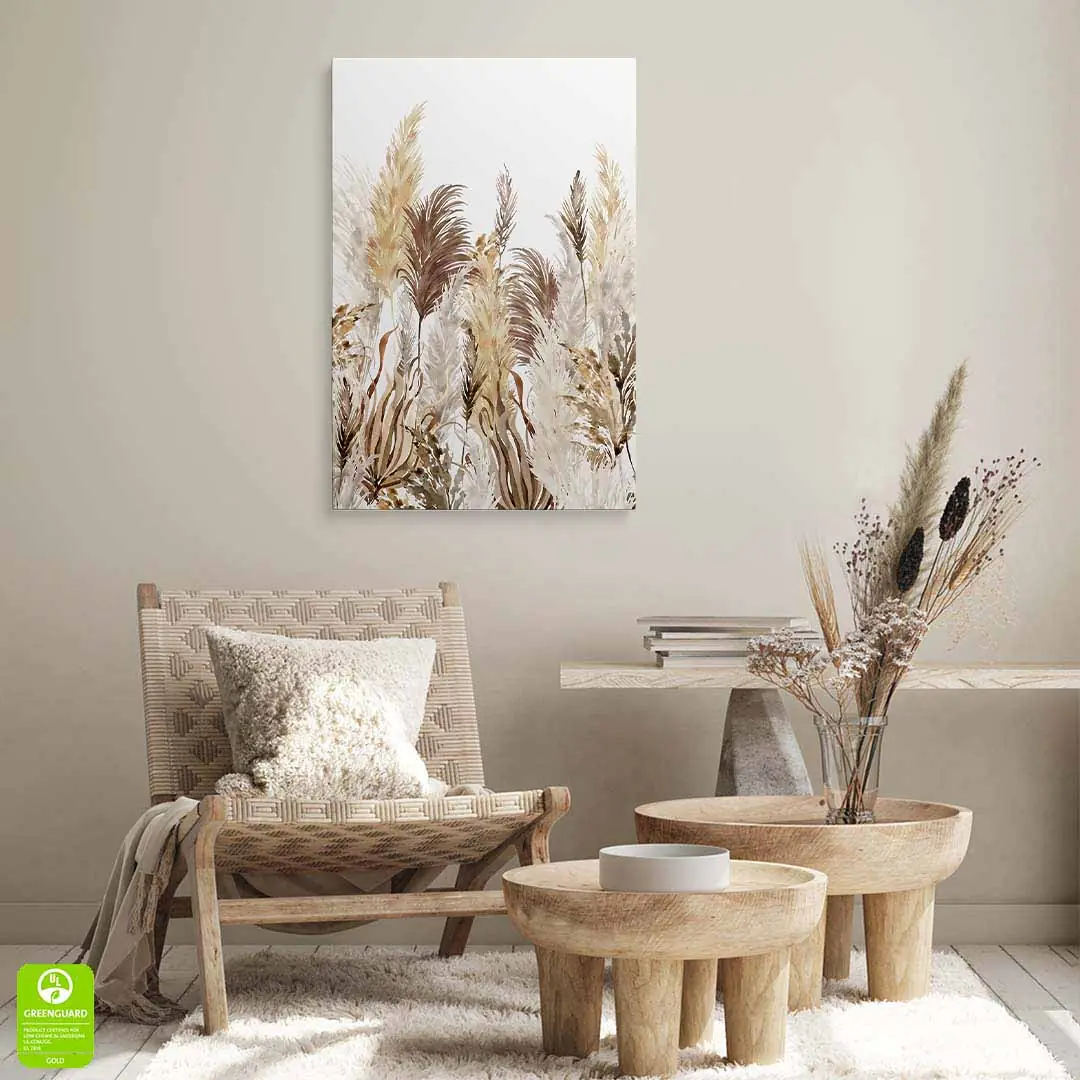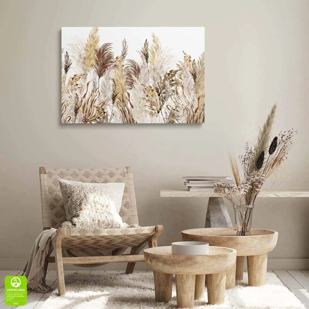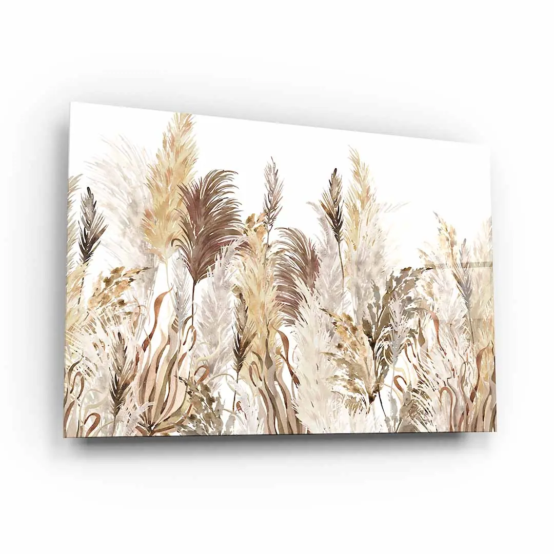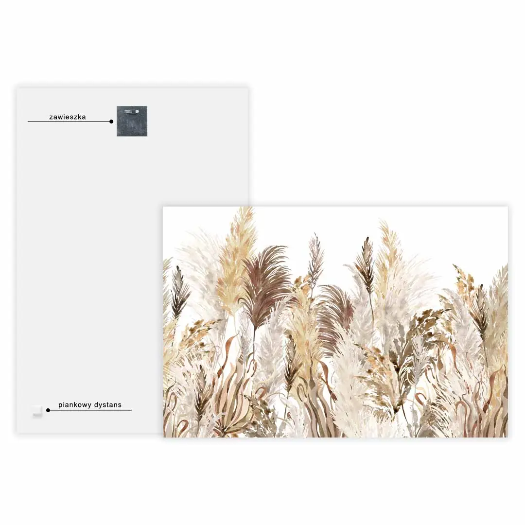 Obraz na szkle akrylowym - Akwarelowa trawa pampasowa w stylu boho do sypialni lub salonu