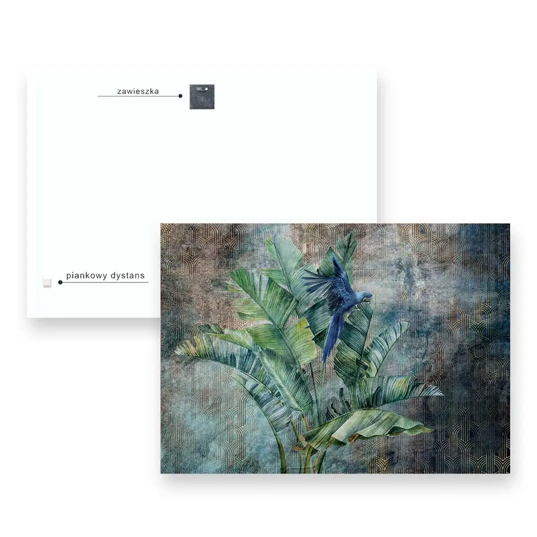 Montaż obrazu to szybki i bezproblemowy proces, ponieważ w zestawie znajdują się wszystkie niezbędne akcesoria mocujące. Narożniki obrazu są odpowiednio zabezpieczone na czas transportu, aby chronić krawędzie przed uszkodzeniem.