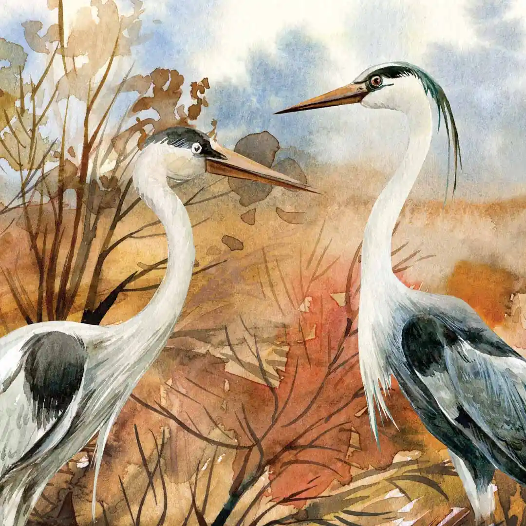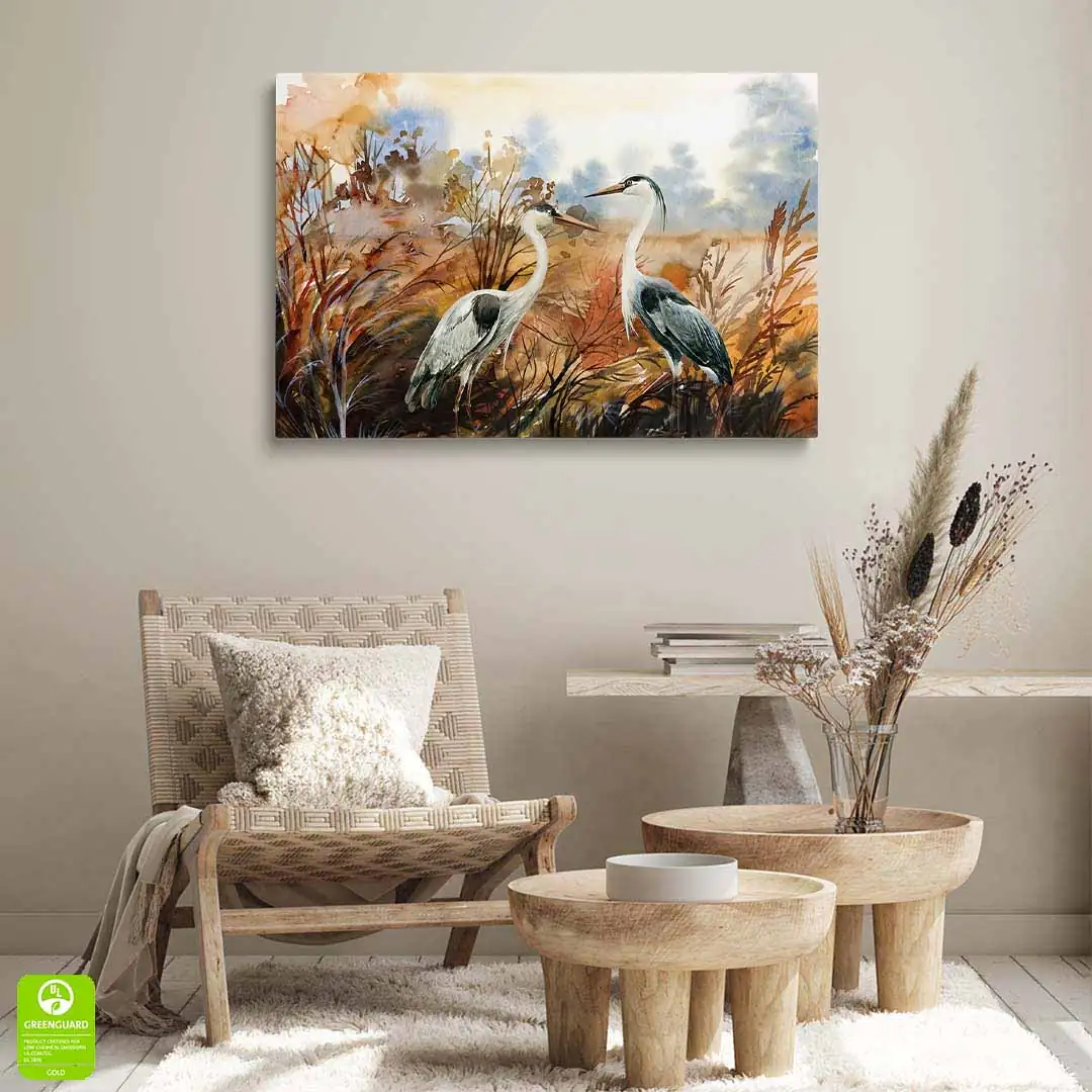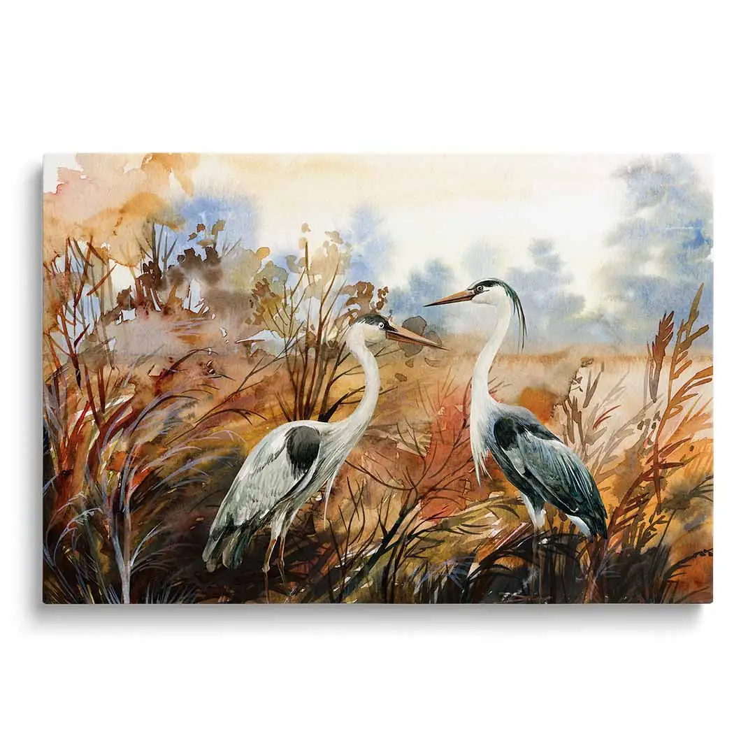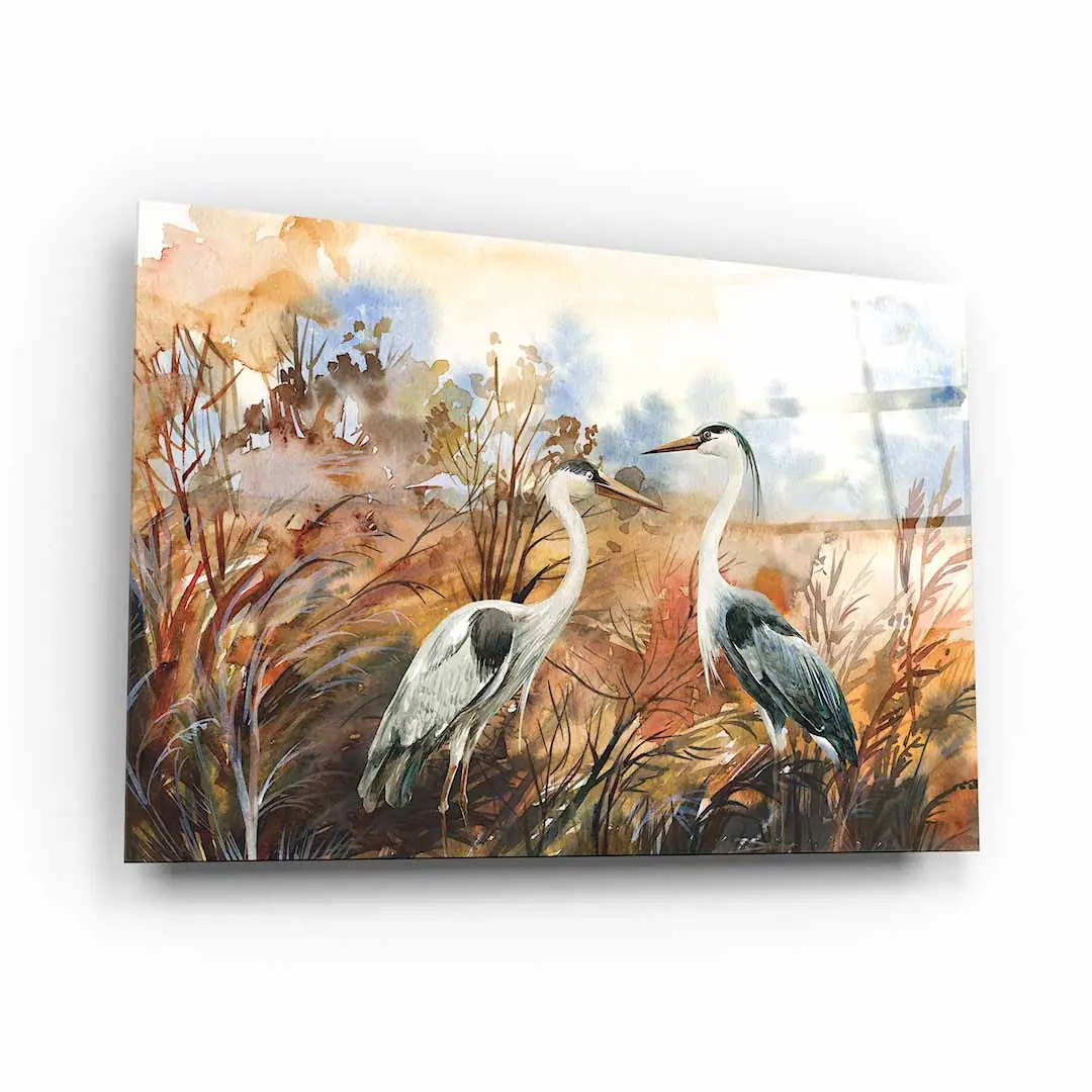Obraz na szkle akrylowym - Czaple na tle jesiennego krajobrazu