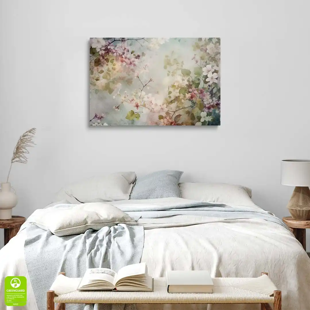 - techniką druku - proces drukowania wykorzystuje inne metody tworzenia kolorów (tzw. "przestrzeń barw") niż te, które stosowane są na ekranach komputera; kolory drukowane mogą wyglądać również nieco inaczej na różnych materiałach (np. canvasie, flizelinie, papierze czy szkle itp.) i przy użyciu różnych tuszy, w naszym przypadku tuszy do druku UV; złote elementy nie są wybiórczo metalizowane - efekt uzyskany jest poprzez wydruk tekstury w kolorze złota;