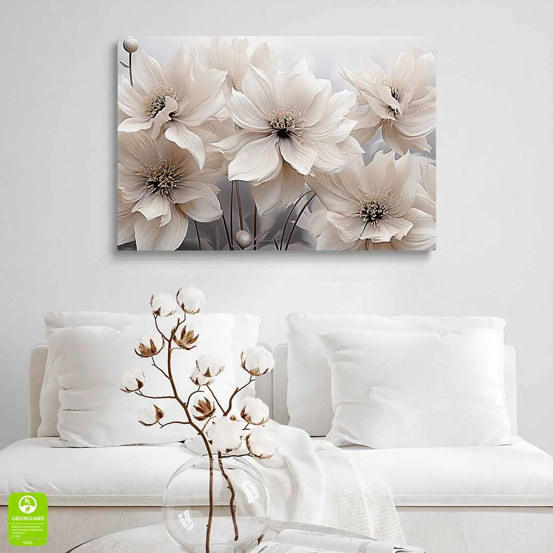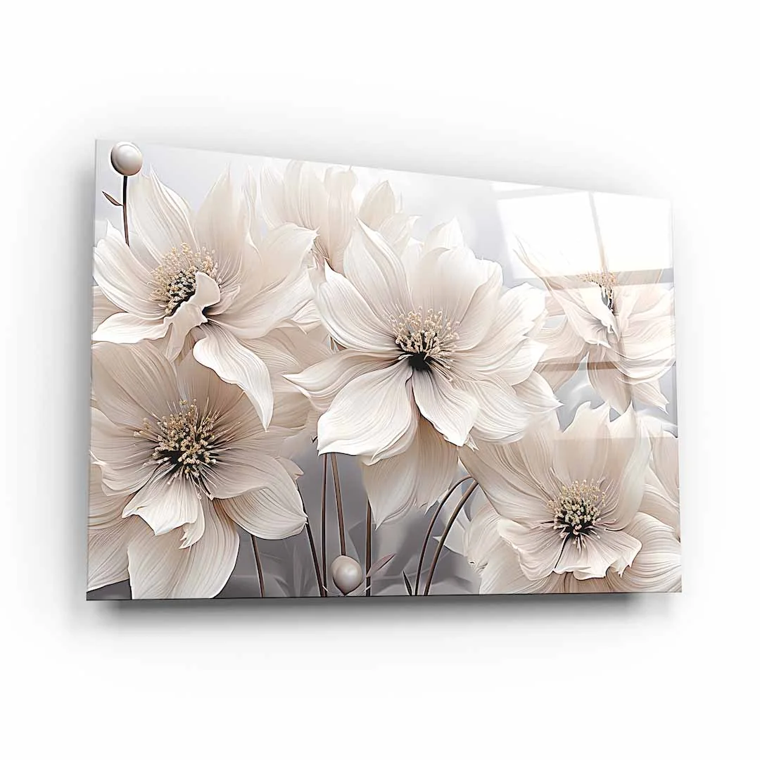 Obraz na szkle akrylowym - Kwiaty w kolorze kremowym