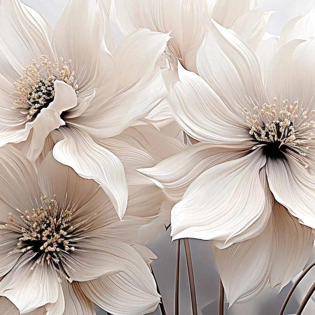 Obraz na szkle akrylowym - Kwiaty w kolorze kremowym to niezwykle elegancka dekoracja ścienna, która szczególnie dobrze prezentować będzie się w nowoczesnych wnętrzach. Ze względu na swoją kolorystykę - krem, beż, brąz i odrobina szarości na dalszym planie - będzie pięknie prezentować się w pomieszczeniach w podobnej tonacji kolorystycznej. Duże kremowe kwiaty, z lekkim dodatkiem beżowego i brązowego koloru to z pewnością dobry wybór dla osób lubiących kwiatowe motywy w swoim domu i piękne eleganckie dodatki. Połysk szklanej tafli pięknie podkreśla delikatny motyw prezentujący się na tym obrazie. Jeśli marzy Ci się drobny lifting nudnej ściany, to nasz obraz z pewnością w tym pomoże.