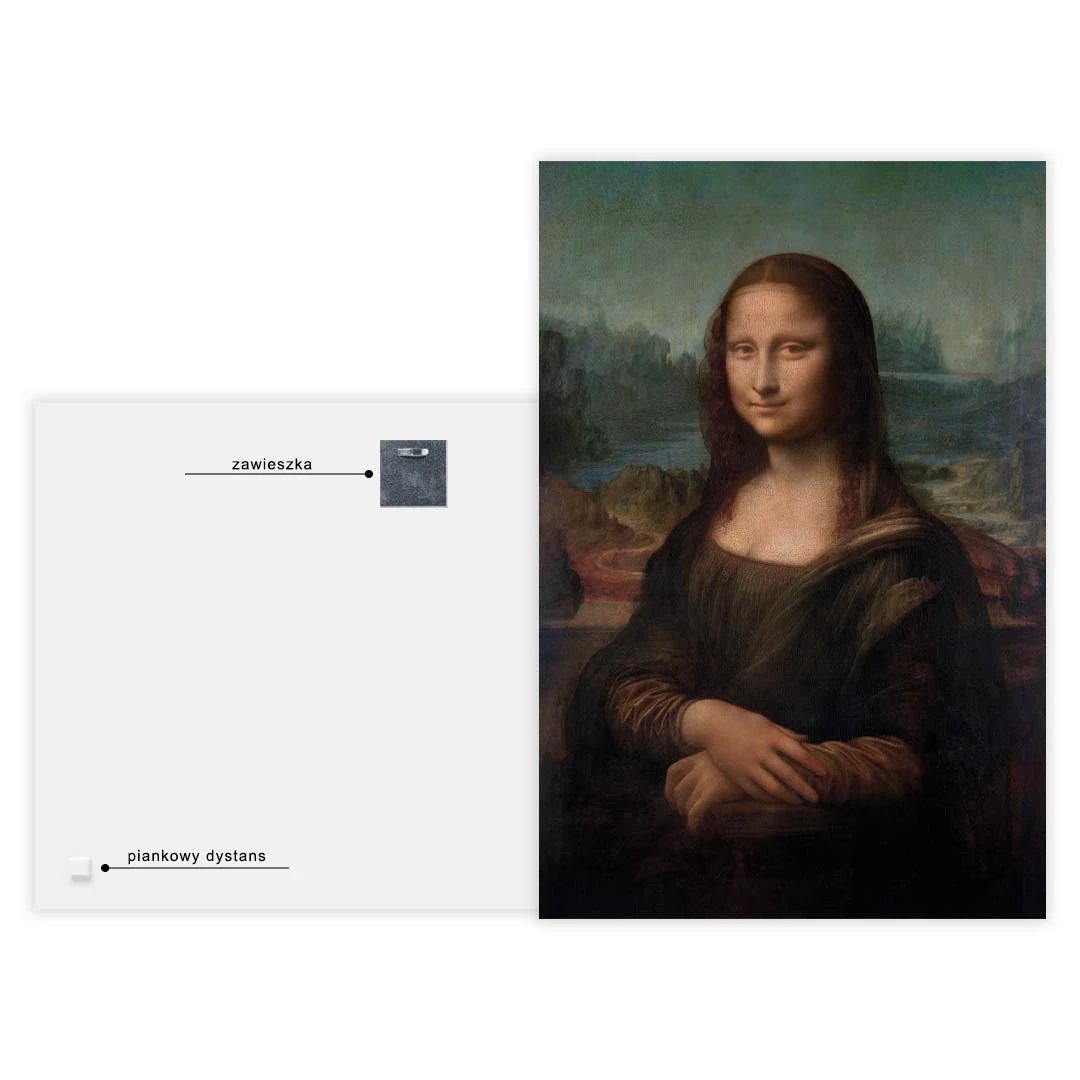 Obraz na szkle akrylowym - Leonardo da Vinci - Mona Lisa - to reprodukcja, w formie obrazu na szkle akrylowym, jednego z najbardziej znanych obrazów olejnych Leonarda da Vinci. Mona Lisa, zwana również, "La Gioconda" przedstawia młodą, tajemniczo uśmiechniętą kobietę, prawdopodobnie Lisę Gherardini, żonę florentyńskiego kupca. Obraz wystawiany jest w Luwrze w Paryżu i jest niewątpliwie jednym z najsłynniejszych i najczęściej oglądanych na świecie dzieł sztuki. Codziennie w paryskim muzeum ustawiają się ogromne kolejki miłośników tego dzieła, by móc zobaczyć go z blisko, choć na chwilę. Kobieta ukazana jest w pozycji siedzącej na balkonie, a za nią widoczny jest krajobraz wijących się ścieżek i potoków. Jeśli podobają Ci się światowej sławy dzieła sztuki we własnym wnętrzu, a szczególnie Mona Lisa, to ten obraz jest znakomitym wyborem.