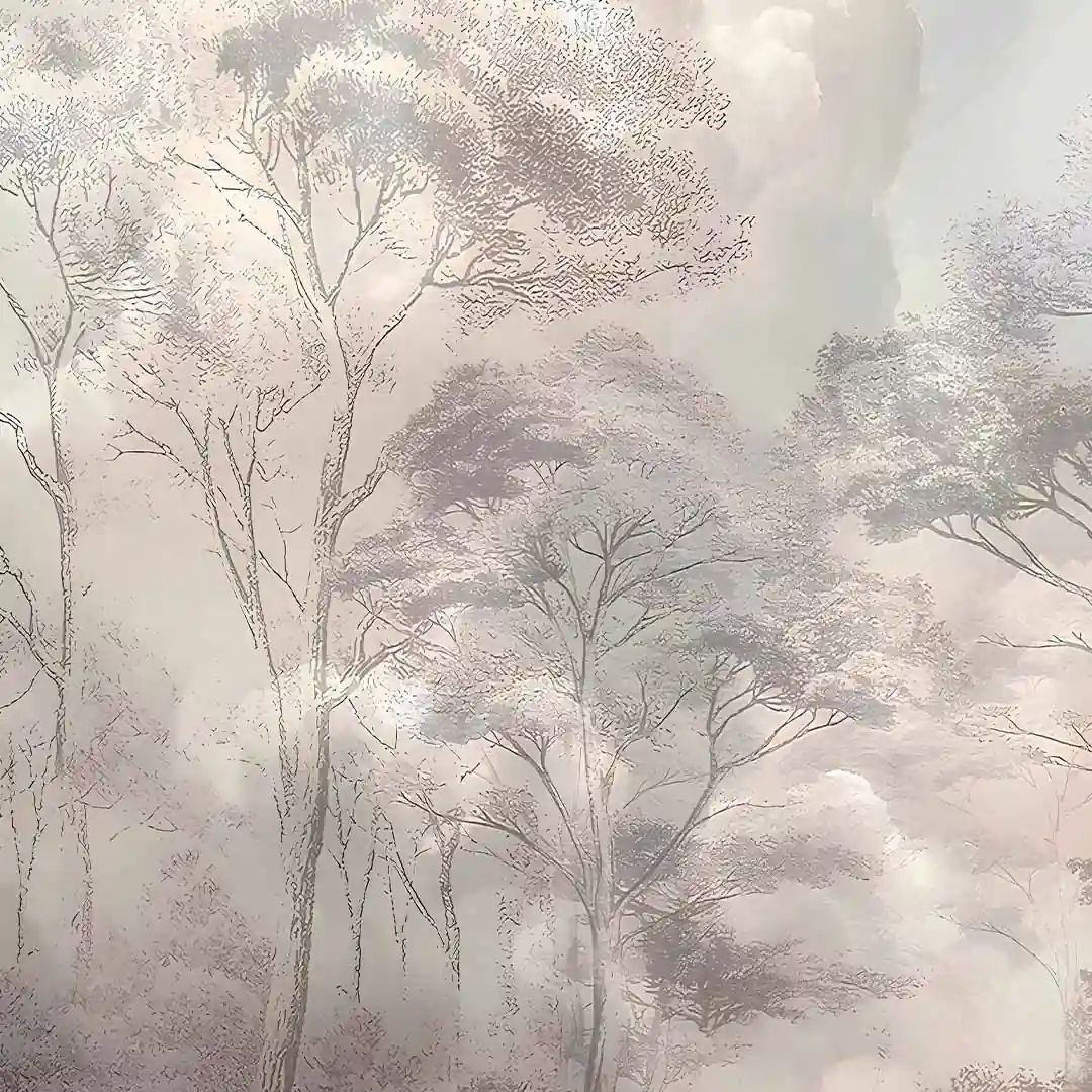 Obraz na szkle akrylowym - Mgliste Drzewa w Stonowanych Barwach, Styl Nowoczesny, Do Salonu, Sypialni