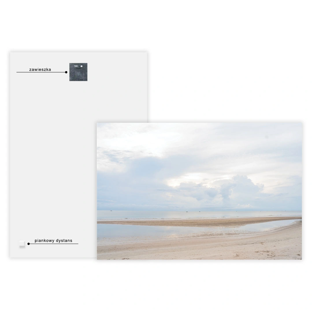 Montaż obrazu to szybki i bezproblemowy proces, ponieważ w zestawie znajdują się wszystkie niezbędne akcesoria mocujące. Narożniki obrazu są odpowiednio zabezpieczone na czas transportu, aby chronić krawędzie przed uszkodzeniem.