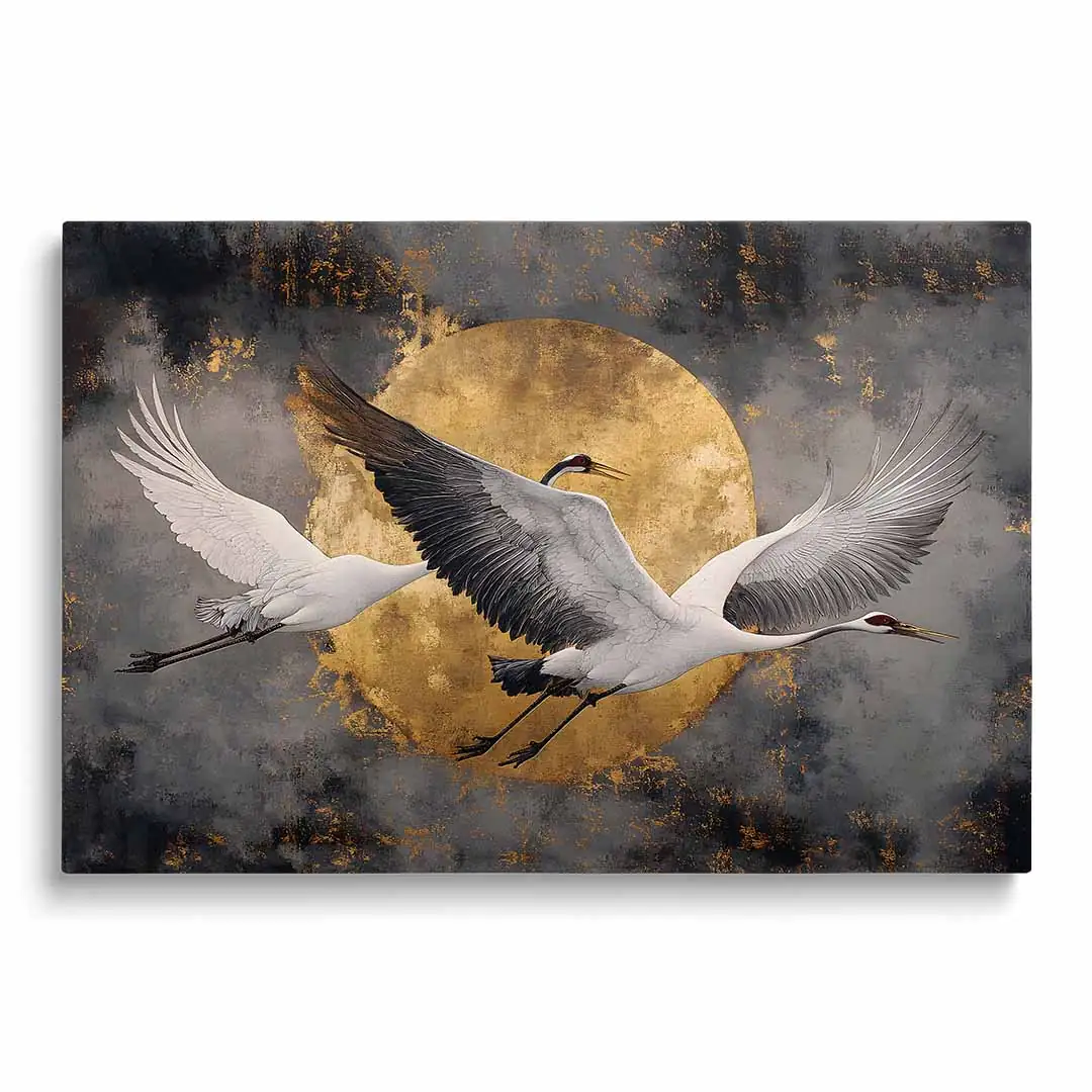 - techniką druku - proces drukowania wykorzystuje inne metody tworzenia kolorów (tzw. "przestrzeń barw") niż te, które stosowane są na ekranach komputera; kolory drukowane mogą wyglądać również nieco inaczej na różnych materiałach (np. canvasie, flizelinie, papierze czy szkle itp.) i przy użyciu różnych tuszy, w naszym przypadku tuszy do druku UV; złote elementy nie są wybiórczo metalizowane - efekt uzyskany jest poprzez wydruk tekstury w kolorze złota;