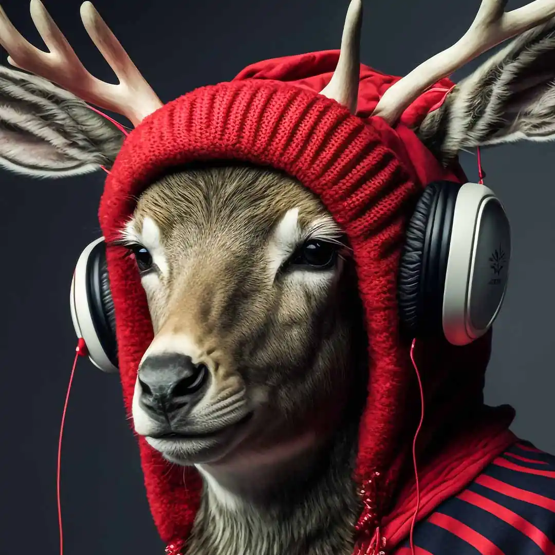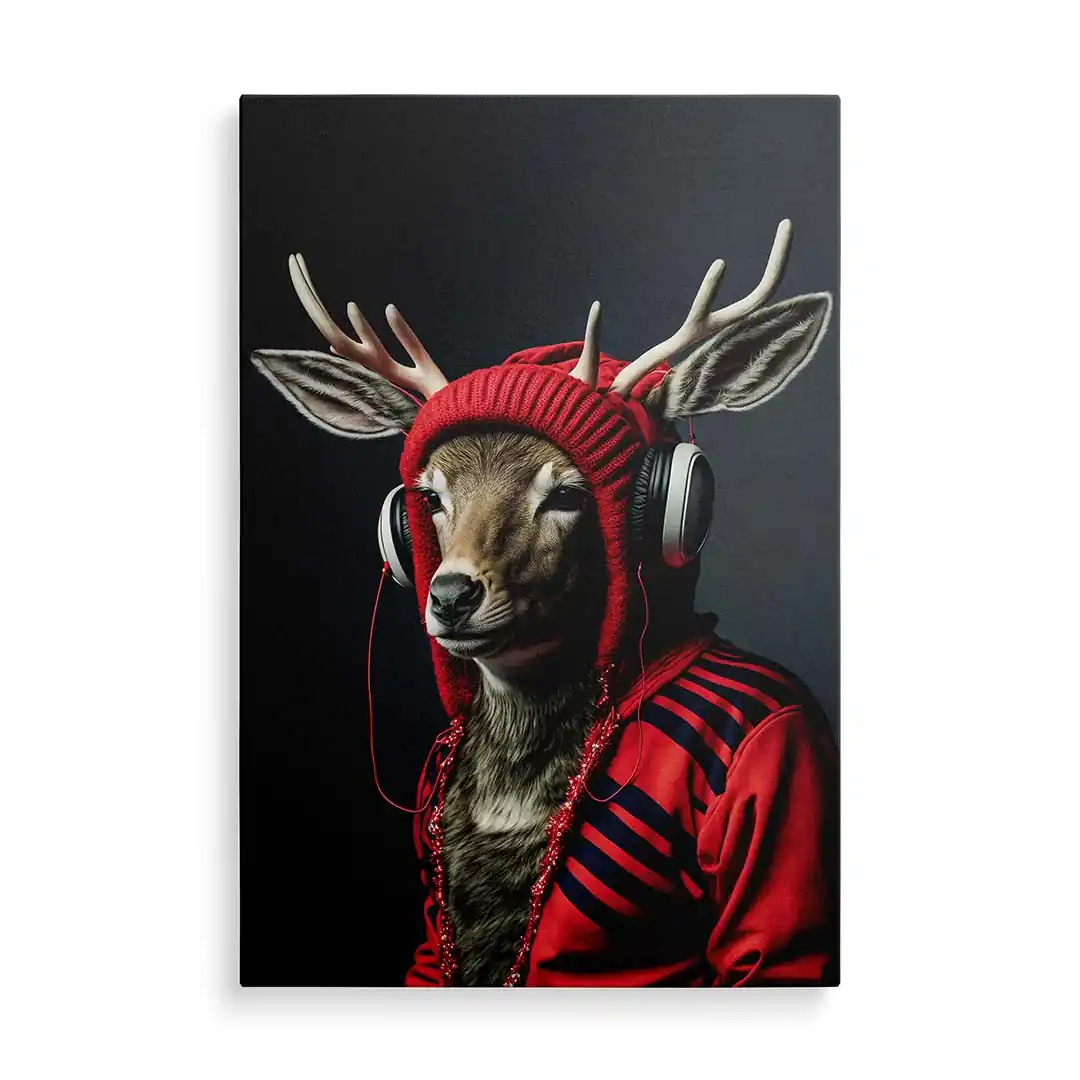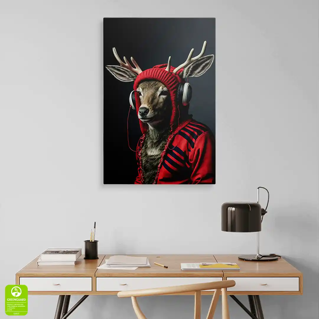 Obraz na szkle akrylowym - Renifer w słuchawkach