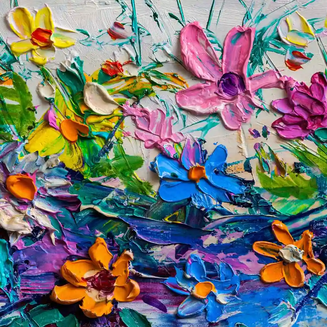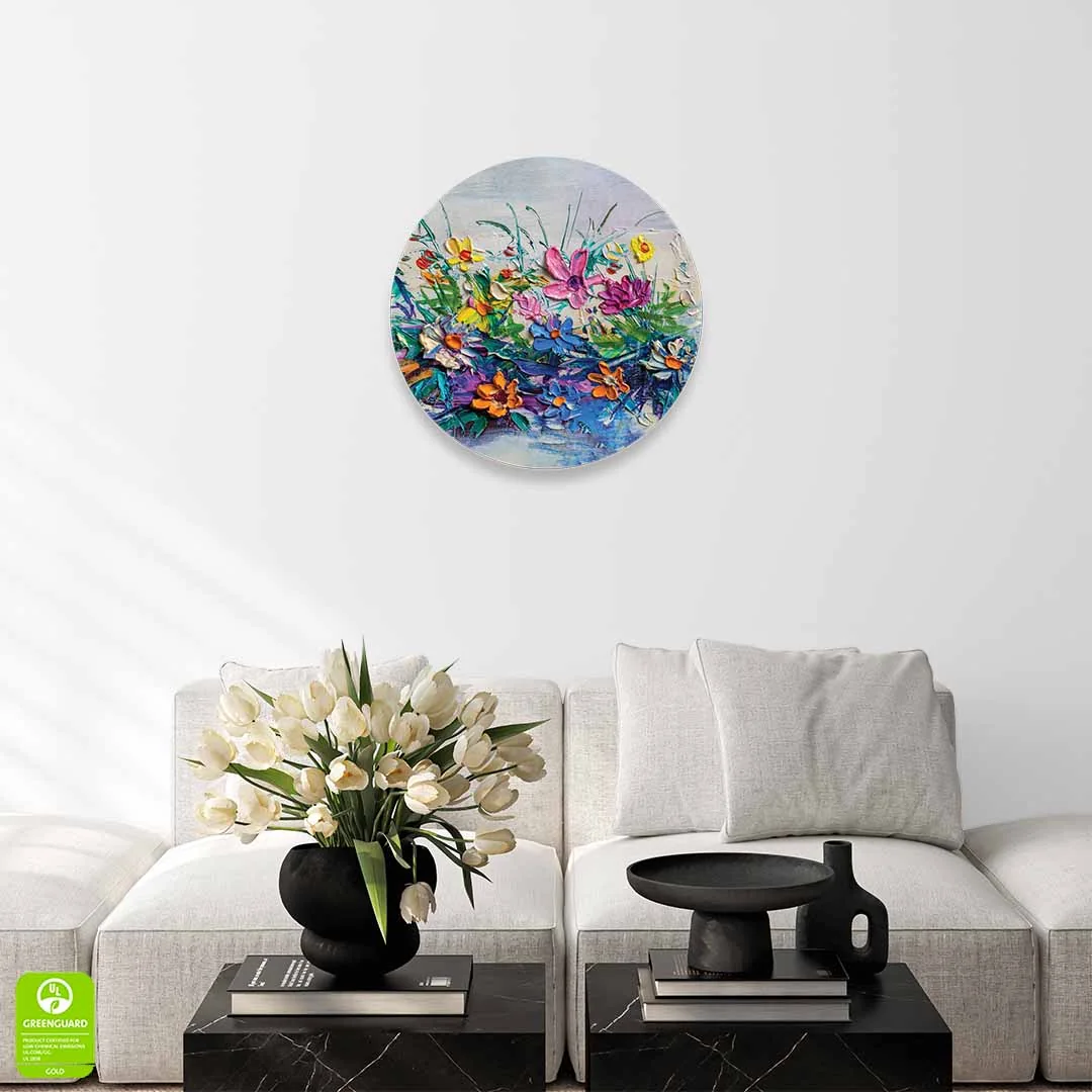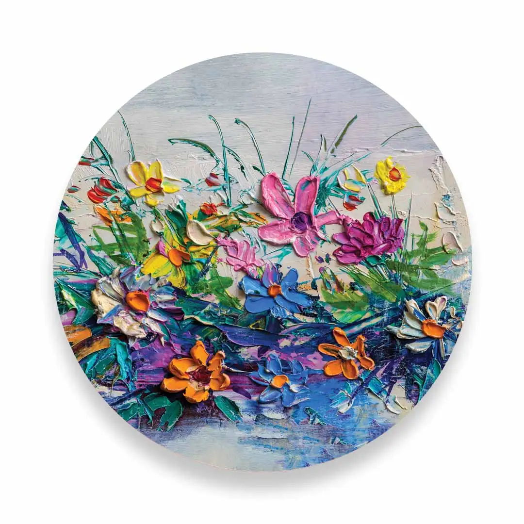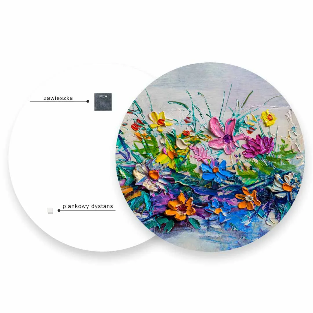 Obraz okrągły szklany - Ekspresyjne kolorowe kwiaty namalowane techniką impasto