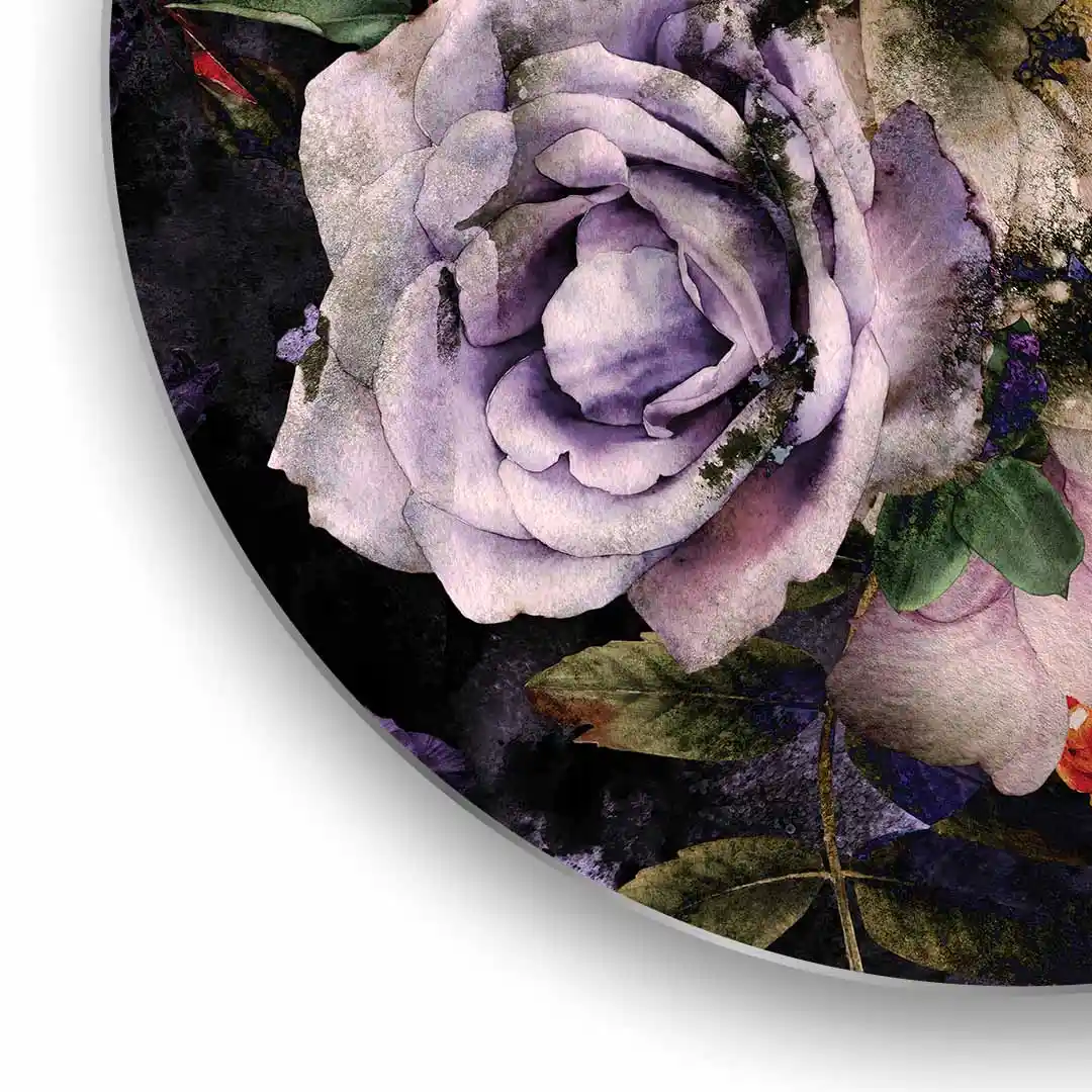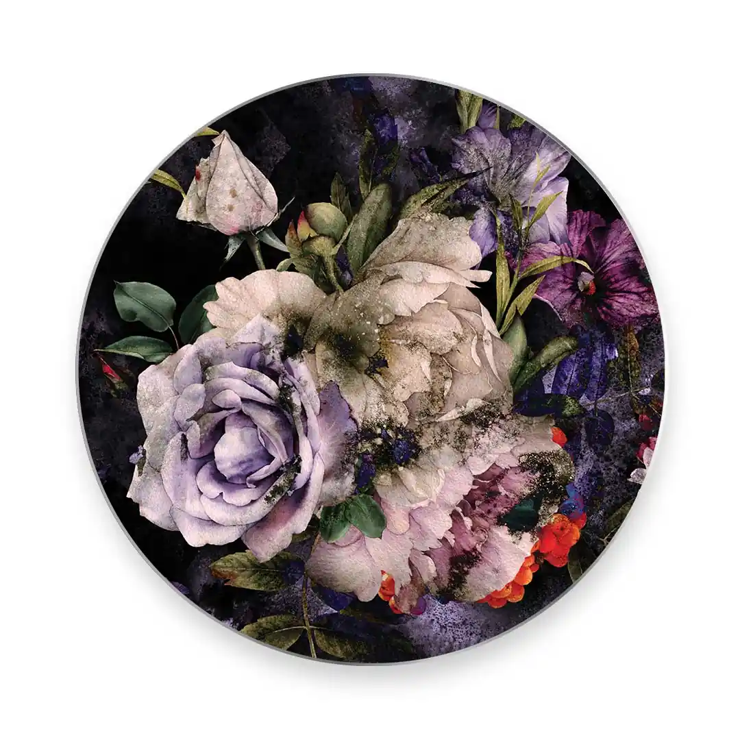 Obraz okrągły szklany Kwiecisty raj na ciemnym tle