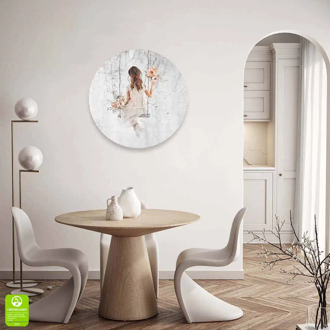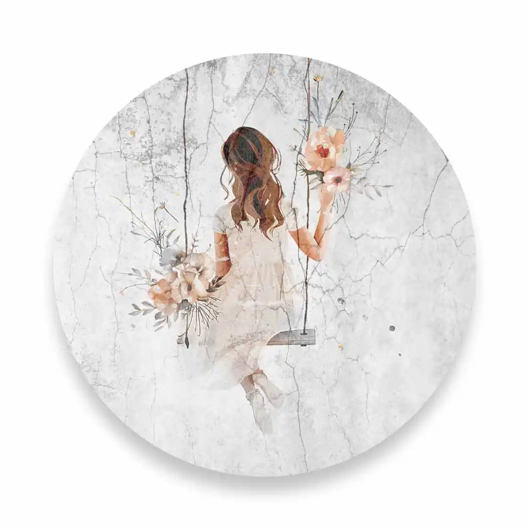Okrągły obraz szklany Dziewczyna na huśtawce