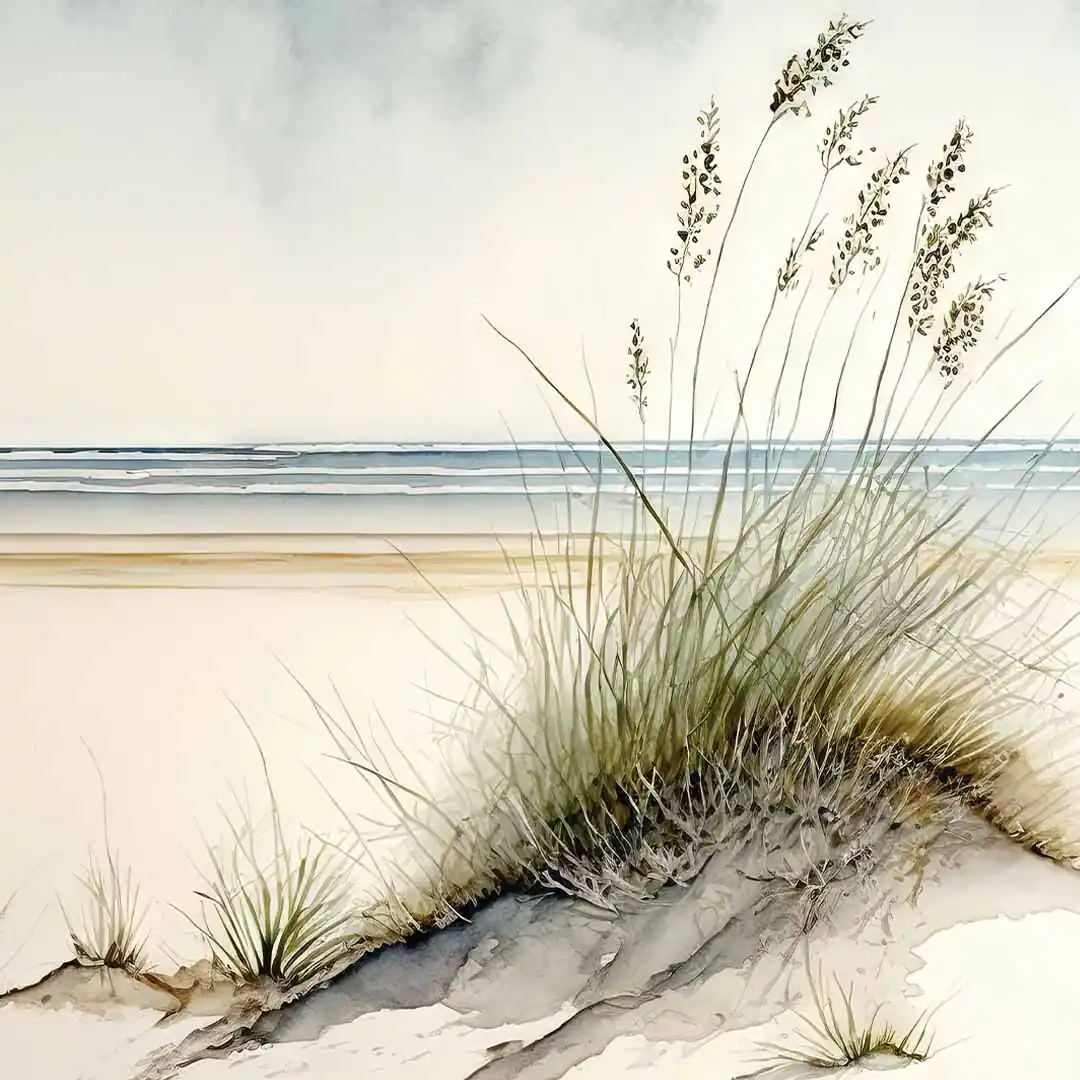 Plakat - Krajobraz piaszczystej plaży - Trzcina morska