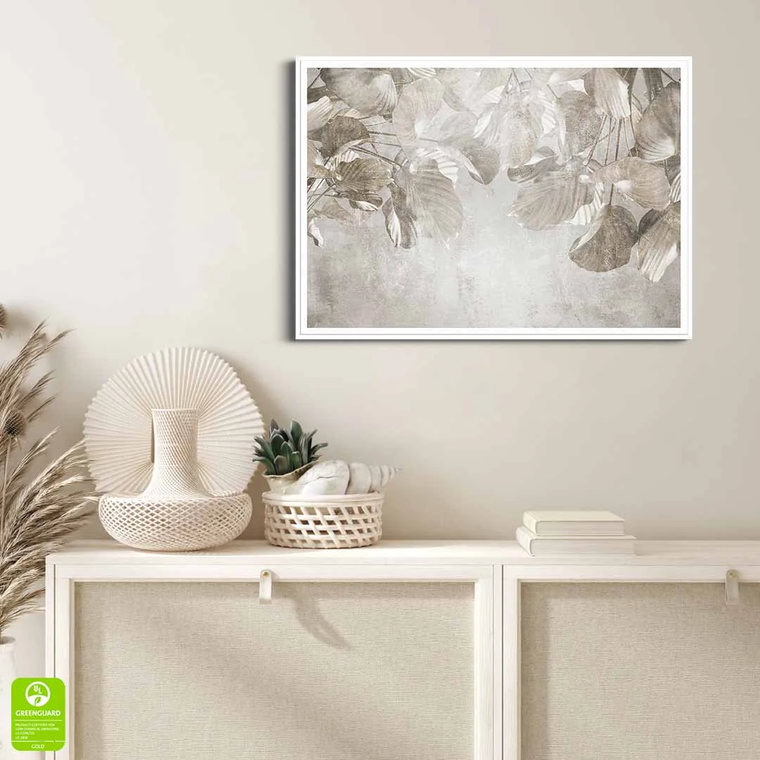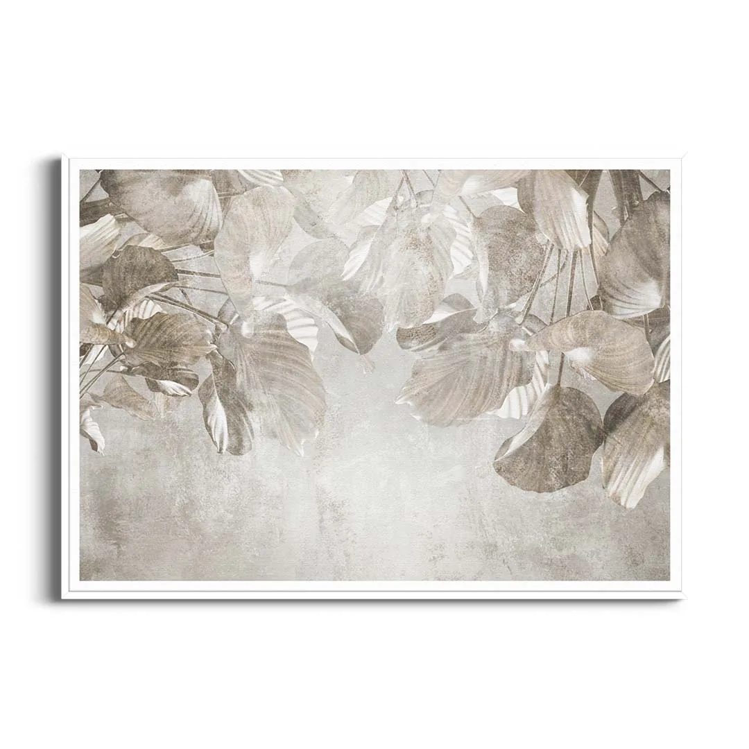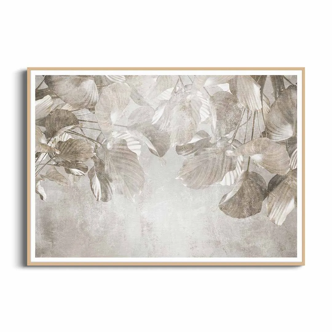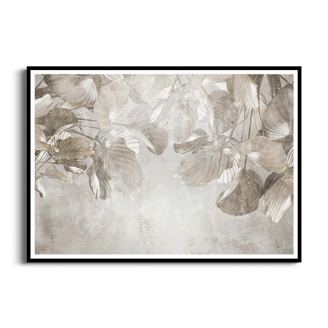 Plakat - Liściasta kurtyna – beżowe liście w nowoczesnym stylu botanicznym