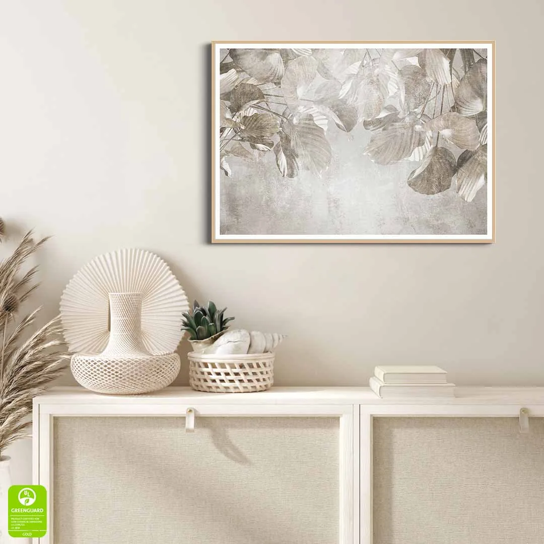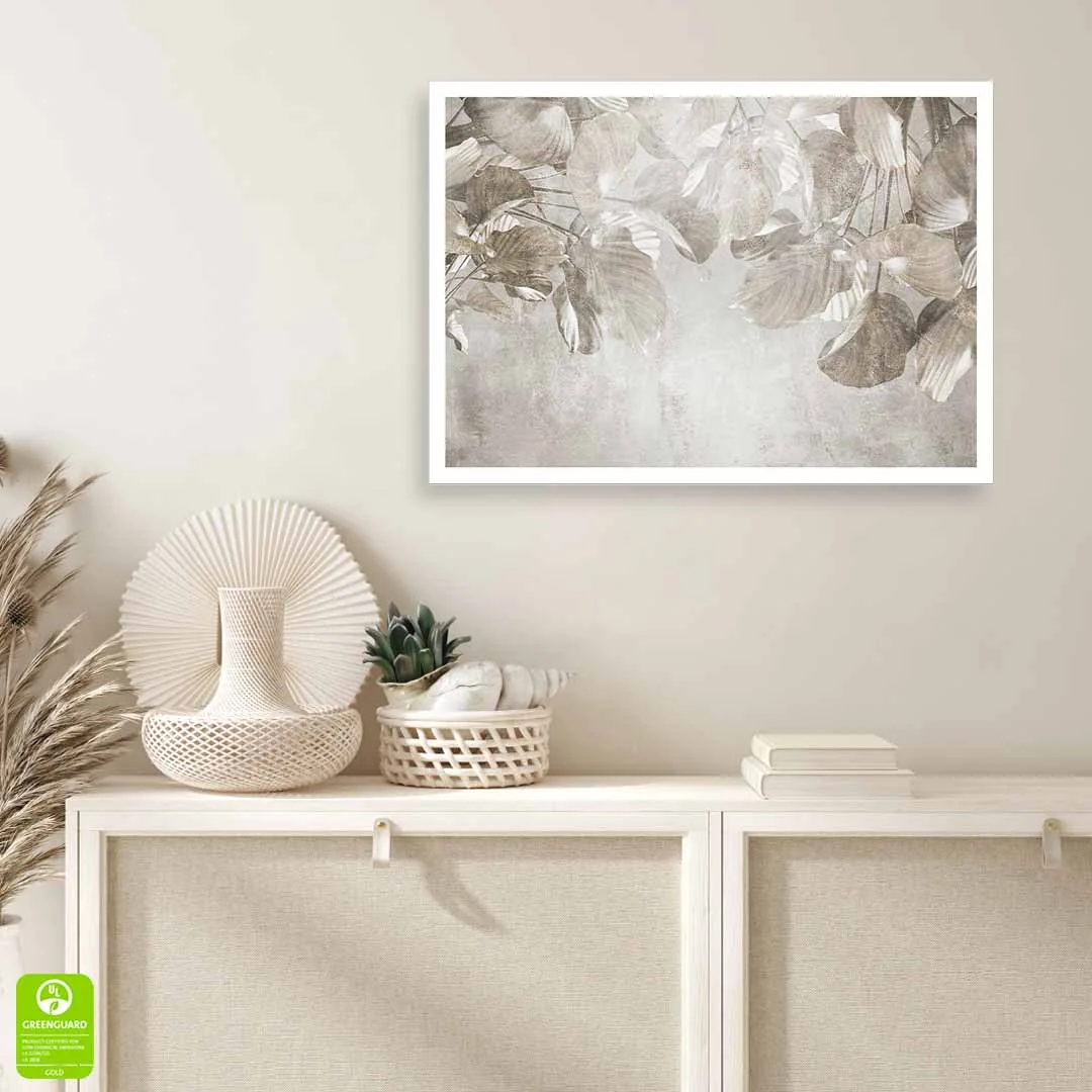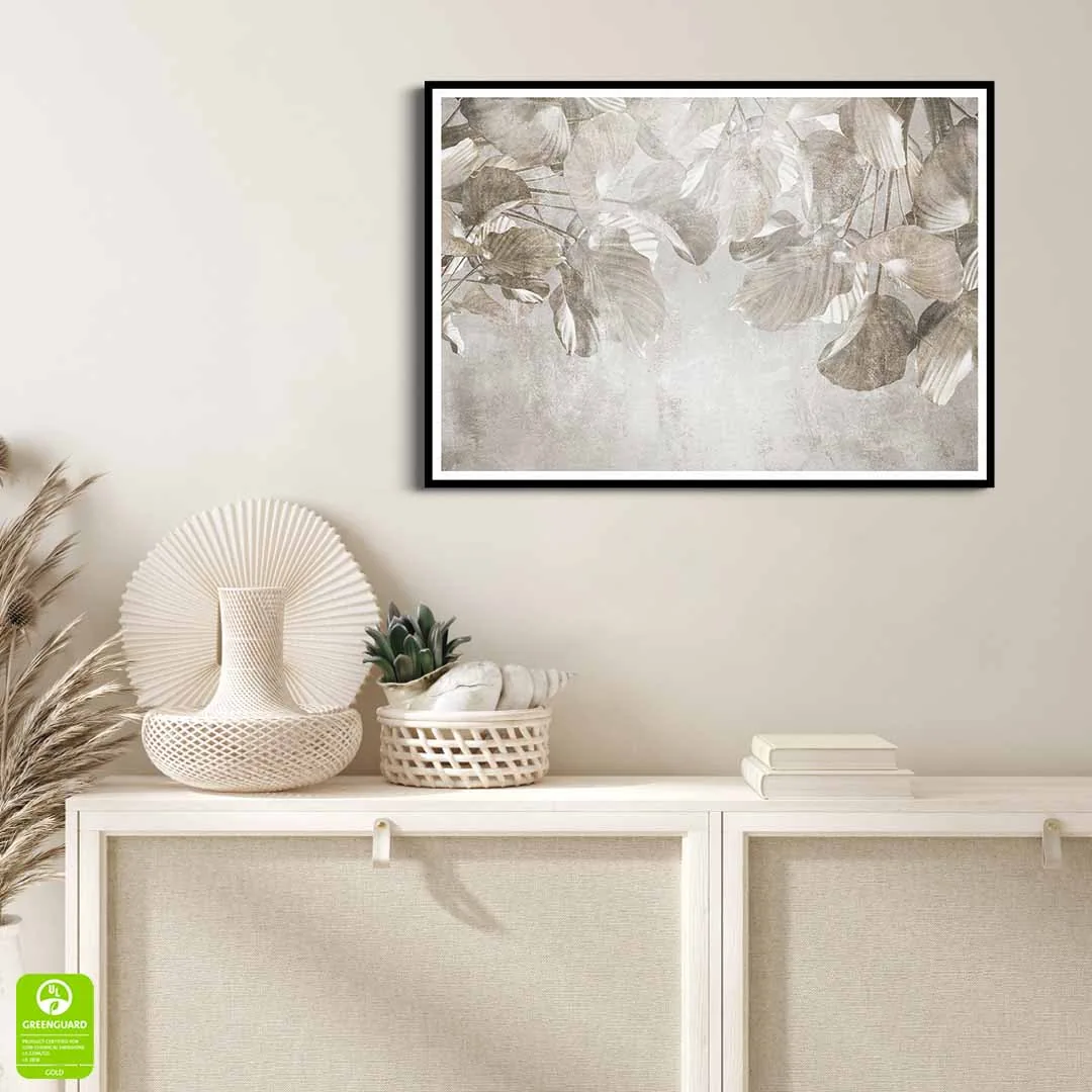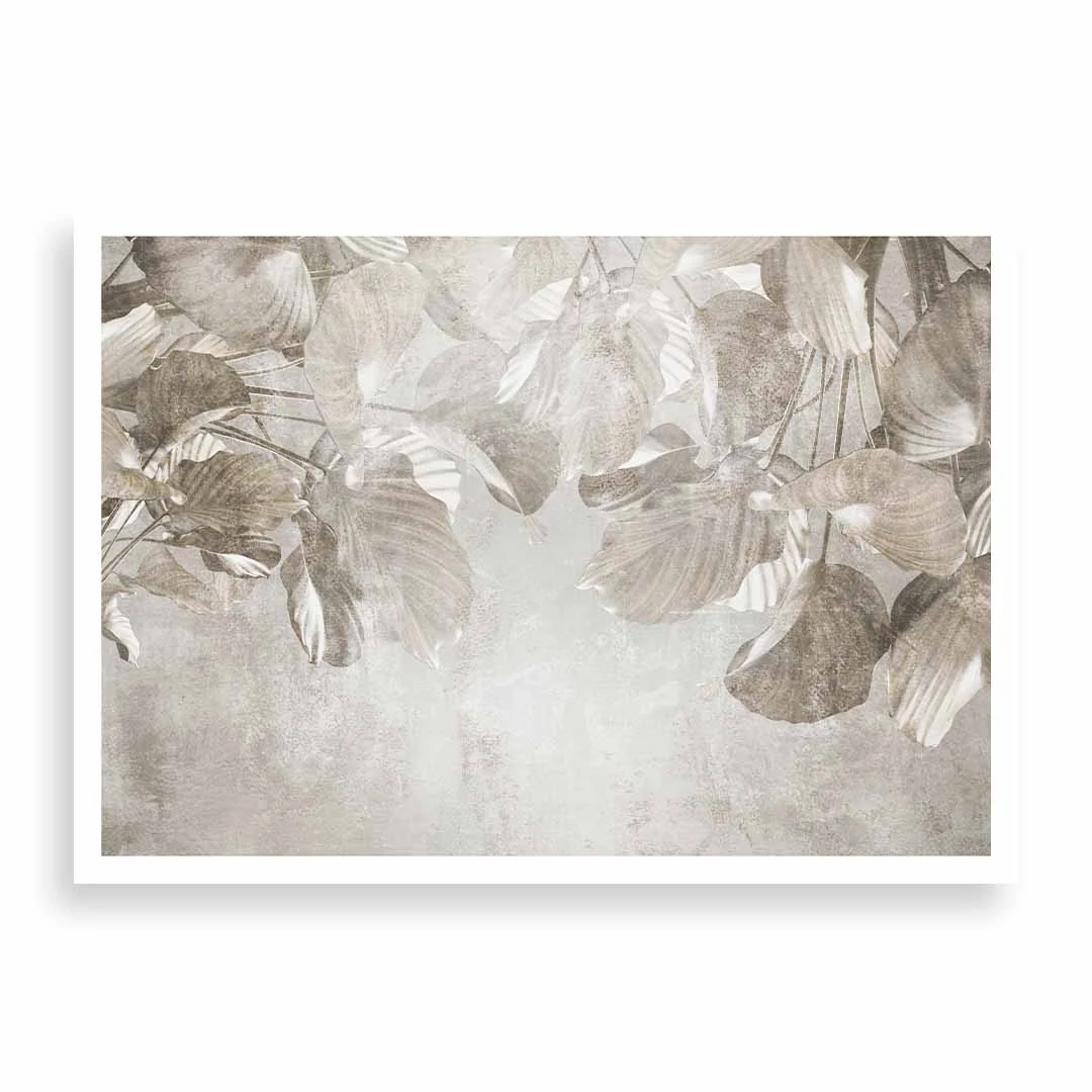 Plakat - Liściasta kurtyna – beżowe liście w nowoczesnym stylu botanicznym