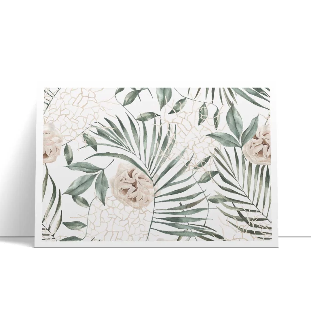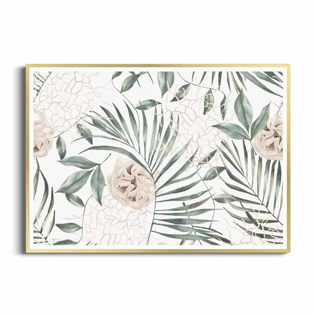 - techniką druku - proces drukowania wykorzystuje inne metody tworzenia kolorów (tzw. "przestrzeń barw") niż te, które stosowane są na ekranach komputera; kolory drukowane mogą wyglądać również nieco inaczej na różnych materiałach (np. canvasie, flizelinie, papierze czy szkle itp.) i przy użyciu różnych tuszy, w naszym przypadku tuszy do druku UV; złote elementy nie są wybiórczo metalizowane - efekt uzyskany jest poprzez wydruk tekstury w kolorze złota;